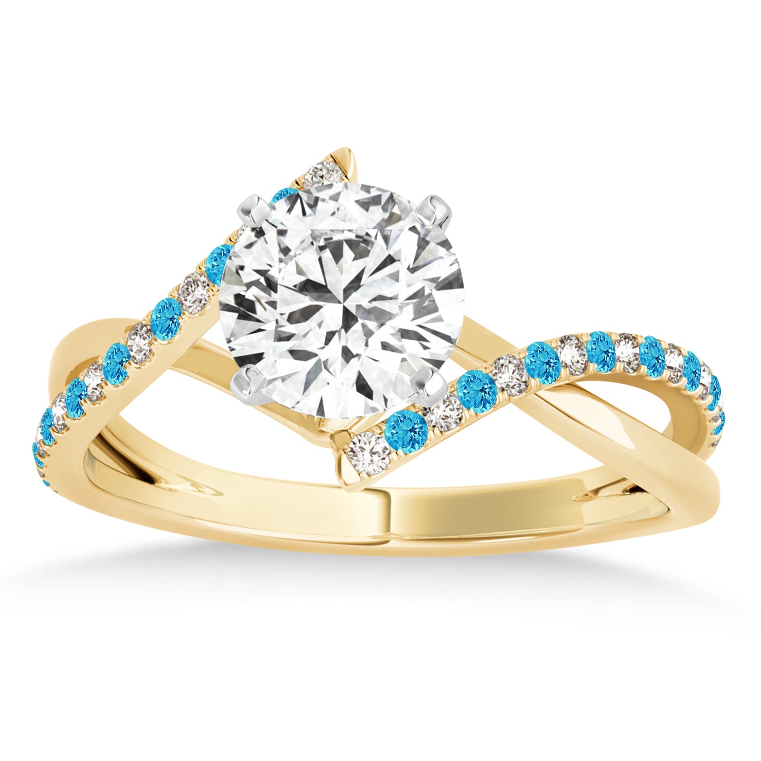 This unique bypass engagement ring setting has a twisted band containing a total of 34 alternating Blue Topaz & Diamonds on the ring's shank. The diamonds are of G-H color and SI1-SI2 clarity.