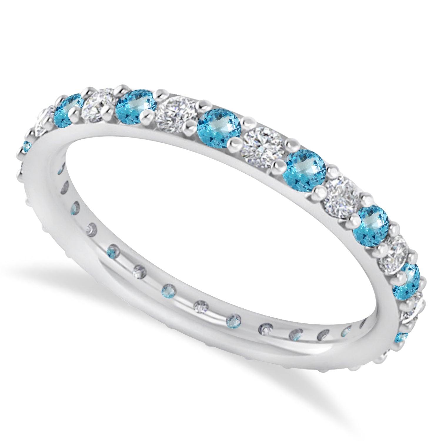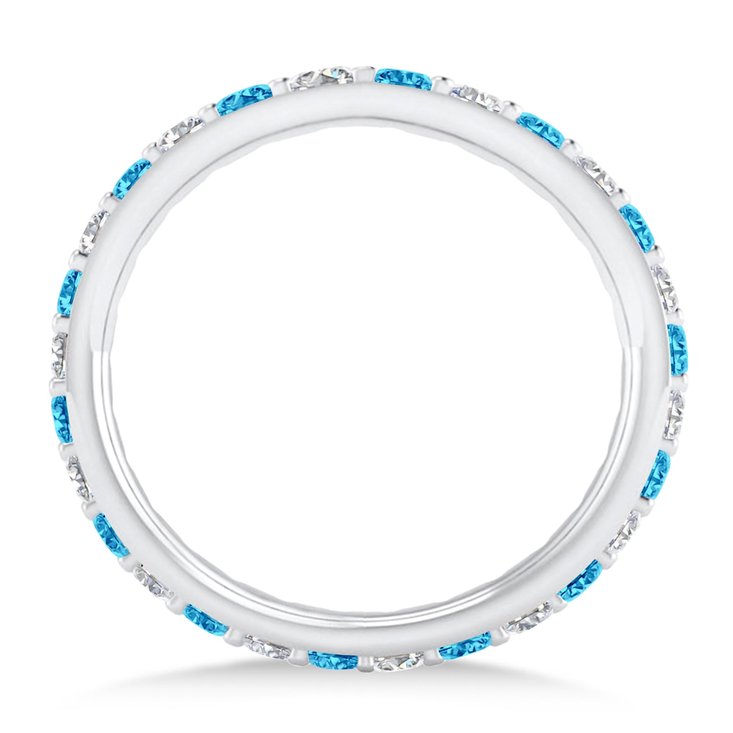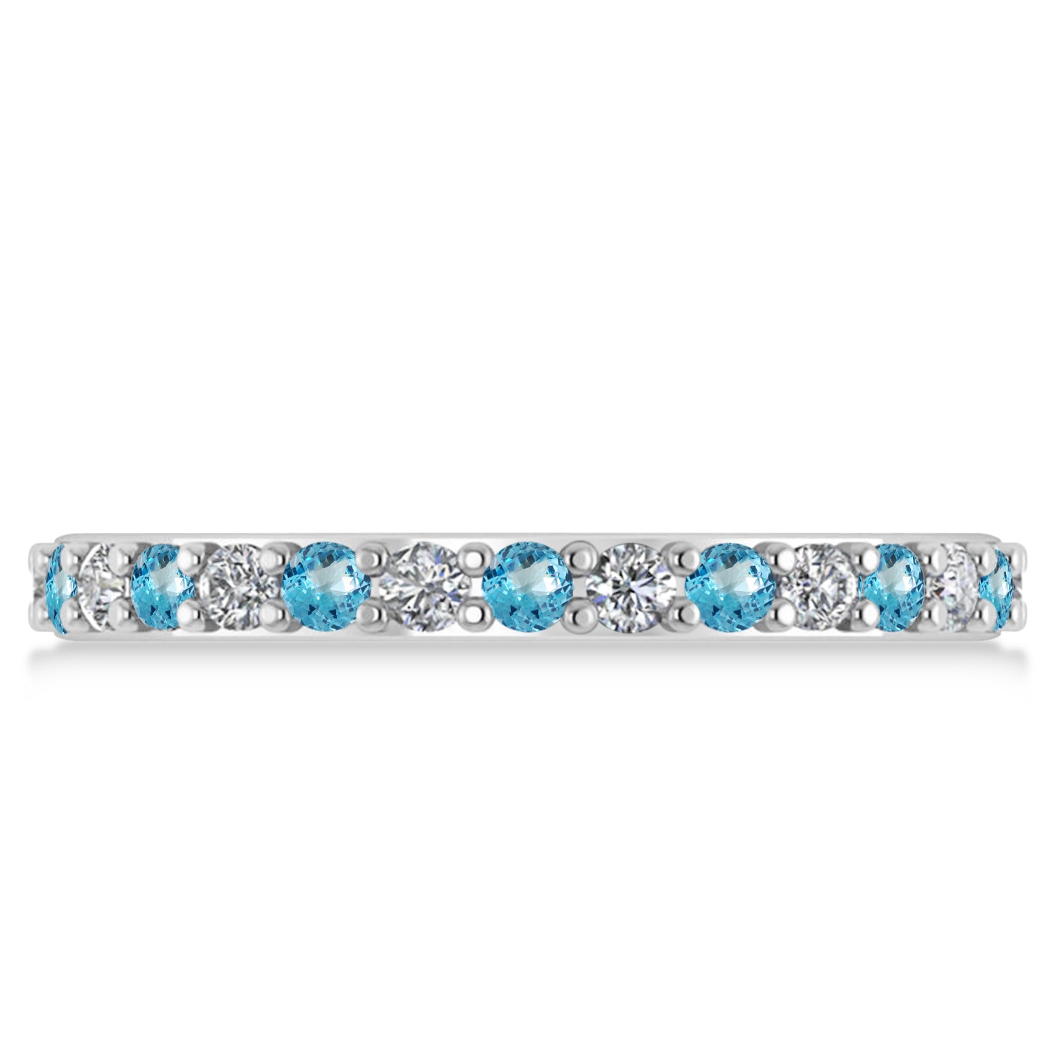 Diamond & Blue Topaz Eternity Wedding Band 14k White Gold (0.87ct)