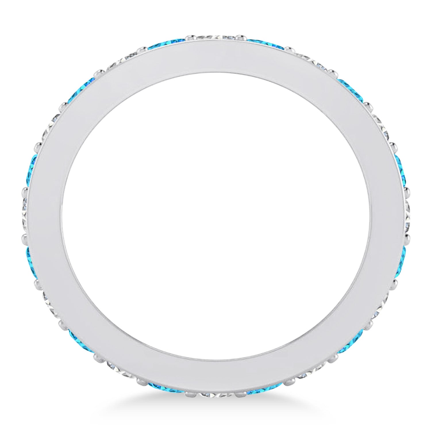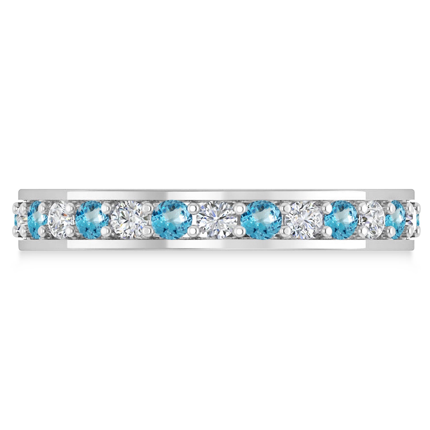 Diamond & Blue Topaz Eternity Wedding Band 14k White Gold (1.08ct)