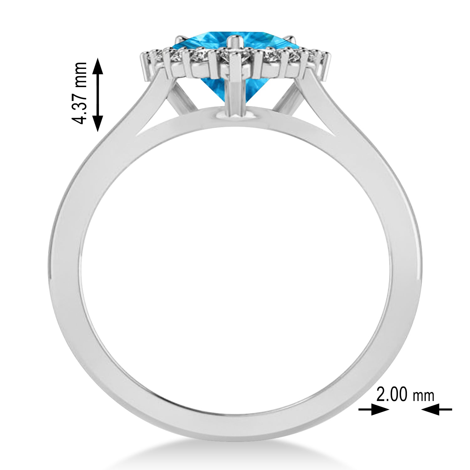 Diamond & Blue Topaz Trillion Cut Ring 14k White Gold (1.6ct)