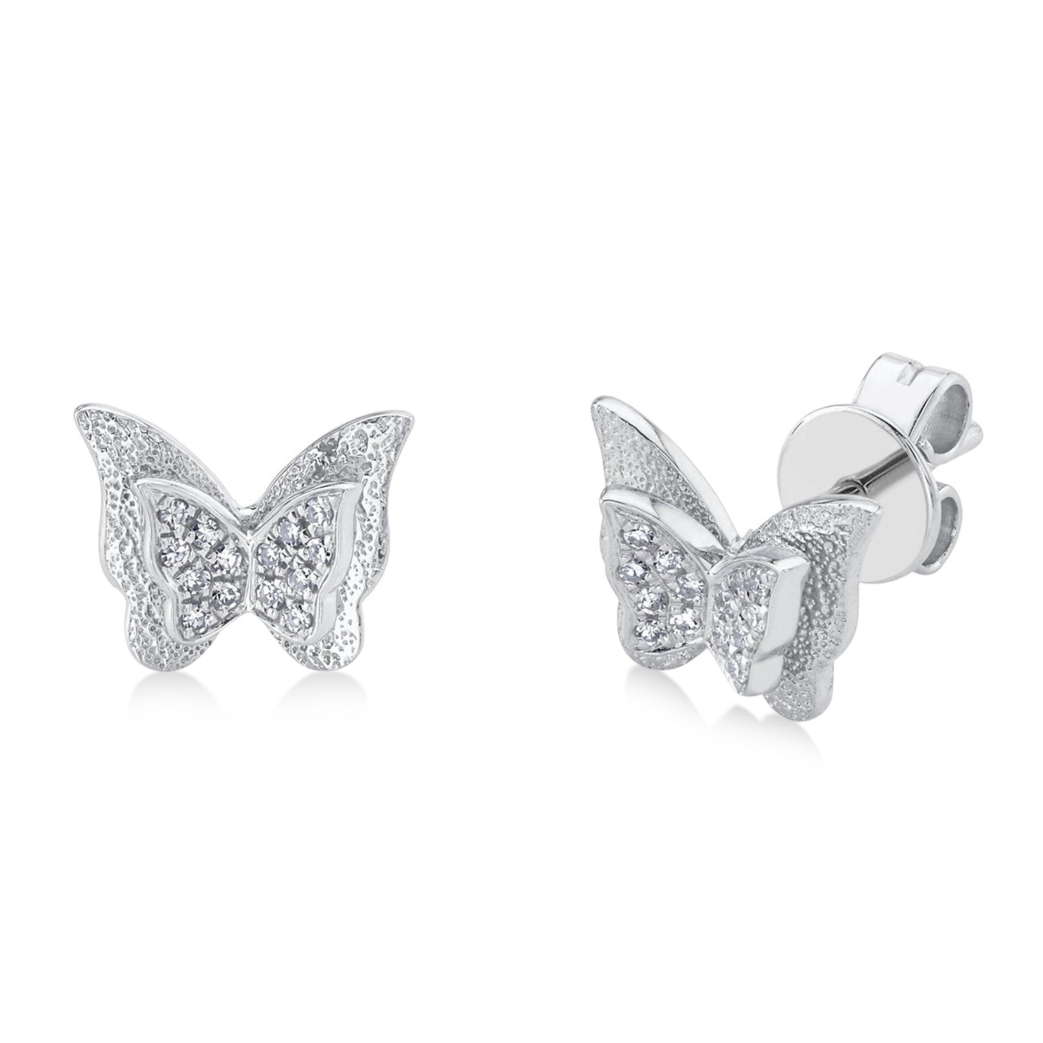 Diamond Butterfly Stud Earrings 14K White Gold (0.06ct)