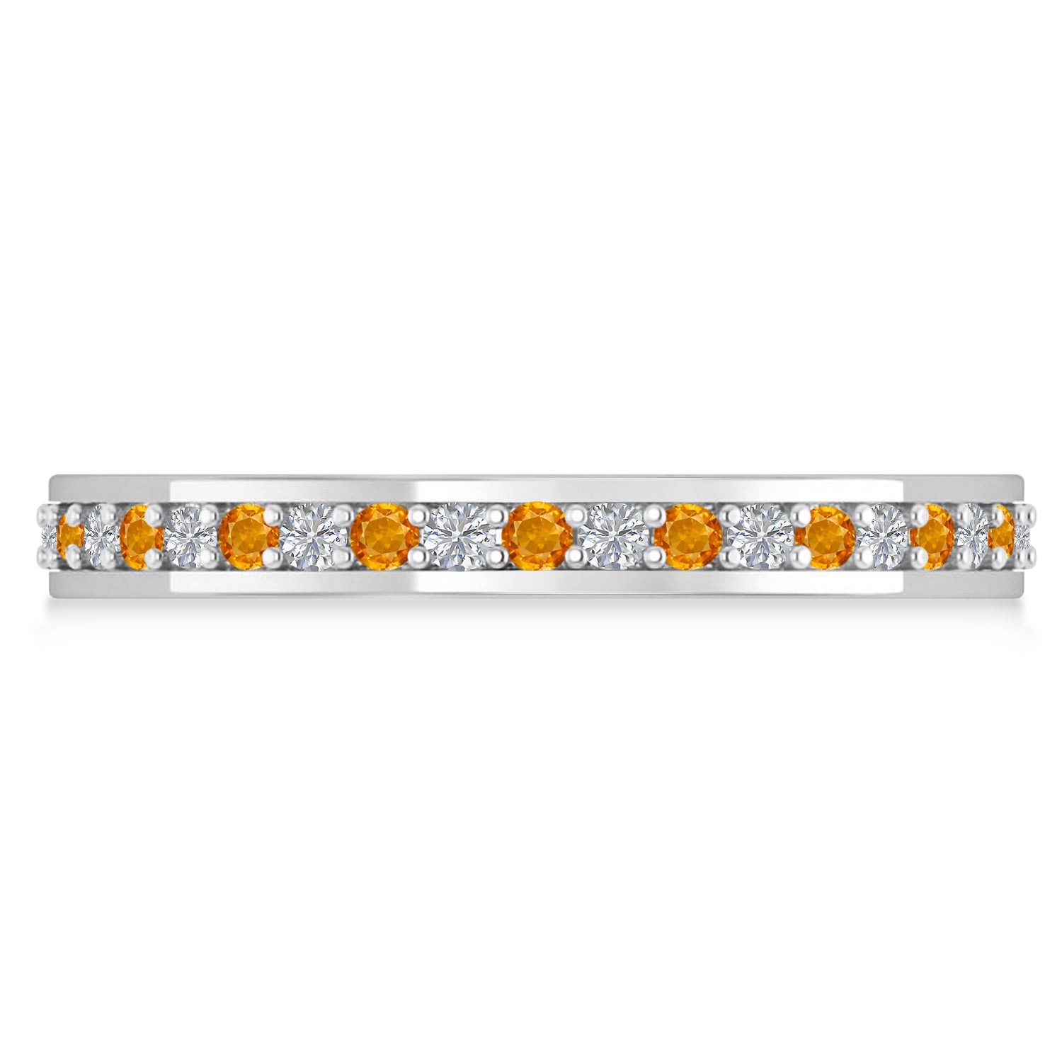Diamond & Citrine Eternity Wedding Band 14k White Gold (0.59ct)