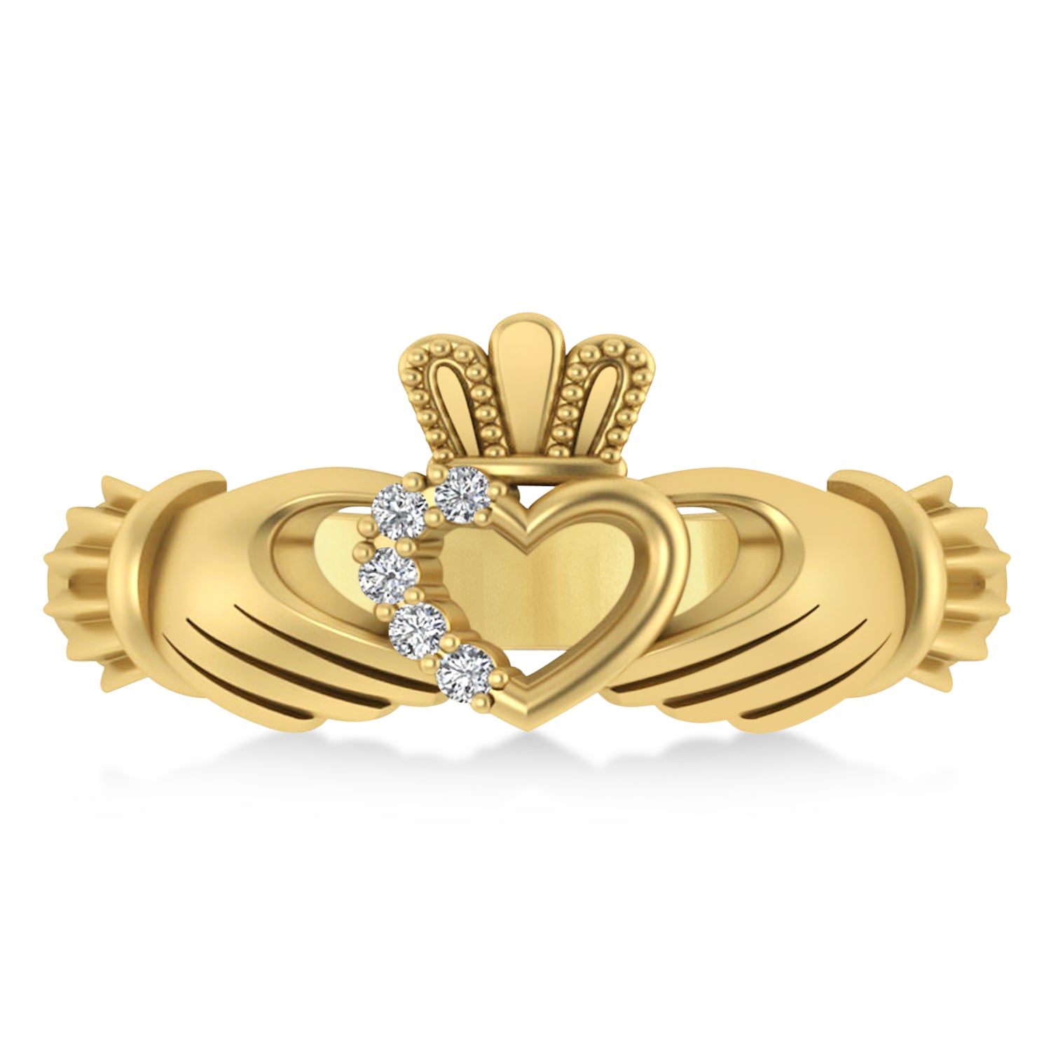 Diamond Claddagh Ladies Ring with Hollow Heart 14k Yellow Gold (0.05ct)