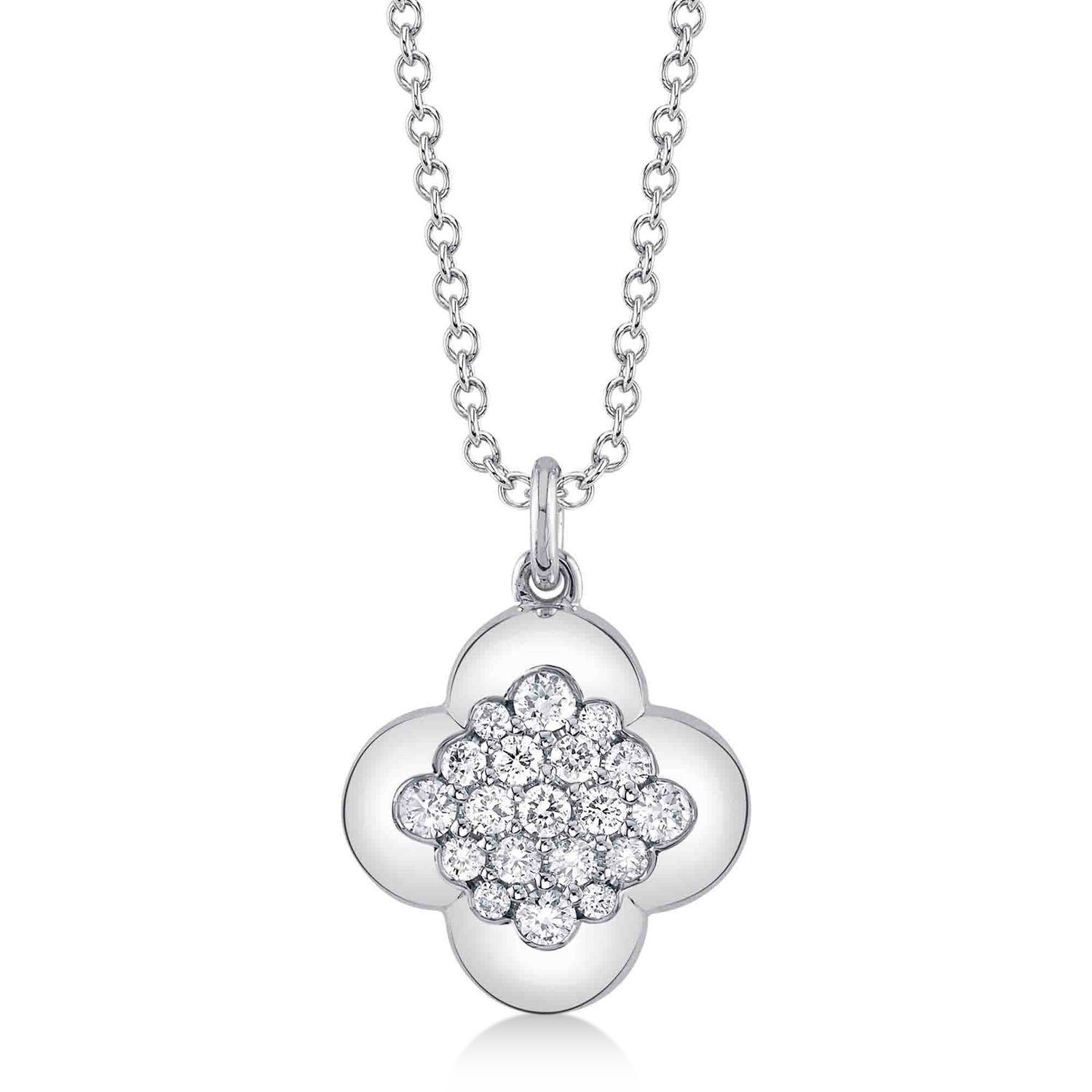 Diamond Clover Pendant Necklace 14K White Gold (0.29ct)