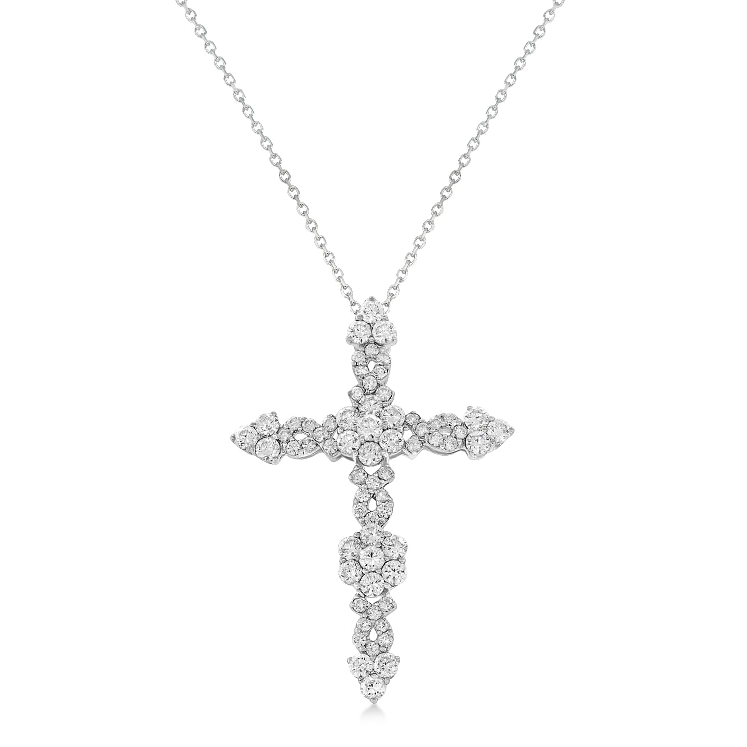 Diamond Cross Pendant Necklace 18k White Gold (1.93ct)