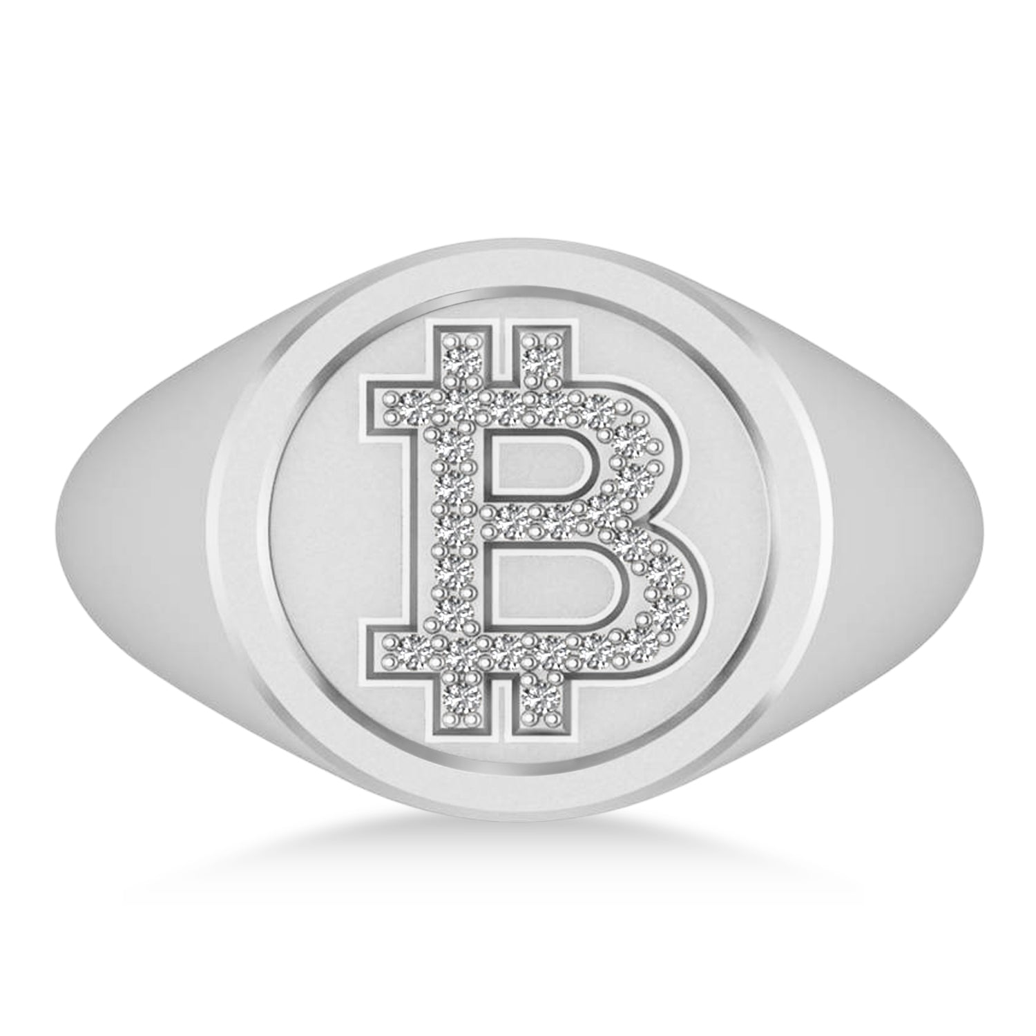 Diamond Cryptocurrency Bitcoin Men's Ring 14k White Gold (0.14ct)