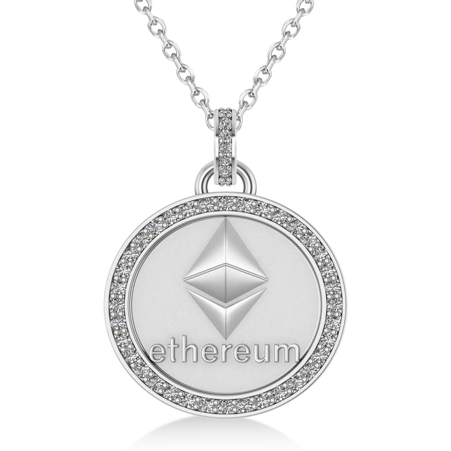 Diamond Cryptocurrency Ethereum Pendant Necklace With Bail 14k White Gold (0.44ct)