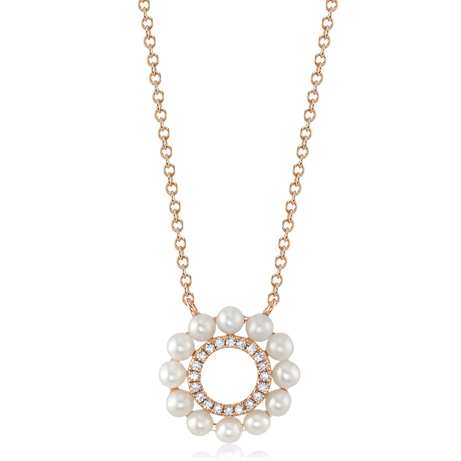 Diamond & Cultured Pearl Circle Pendant Necklace 14K Rose Gold (0.05ct)
