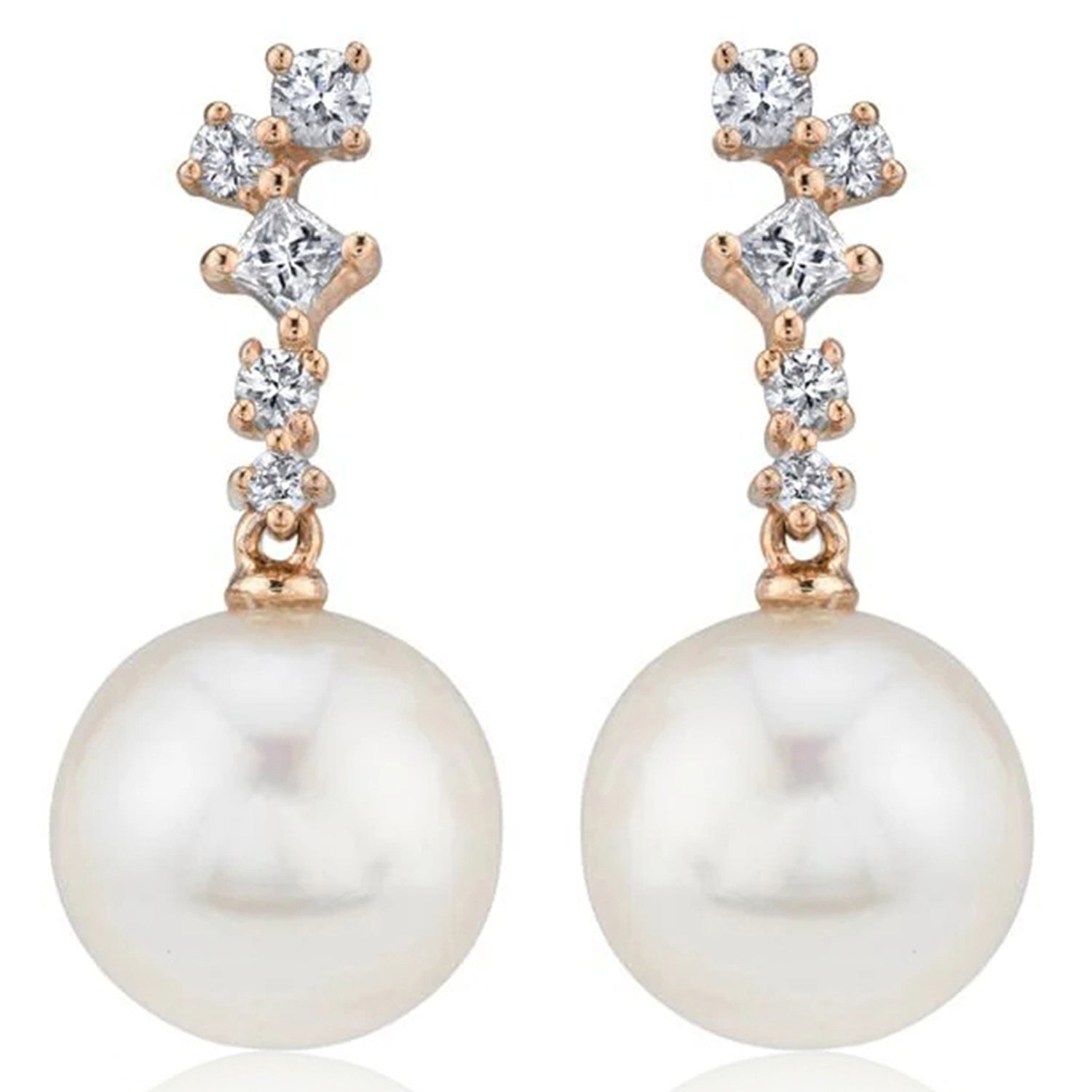 Diamond & Cultured Pearl Dangling Earrings 14K Rose Gold (0.22ct)