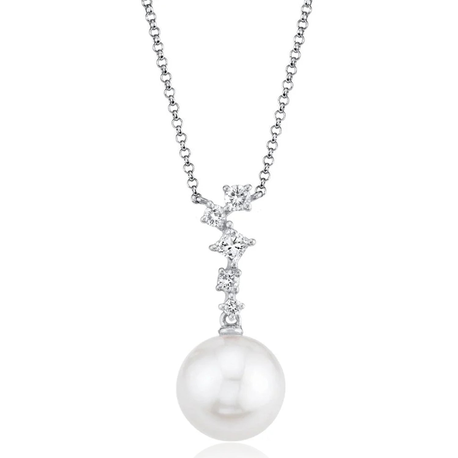 Diamond & Cultured Pearl Dangling Pendant Necklace 14K White Gold (0.16ct)