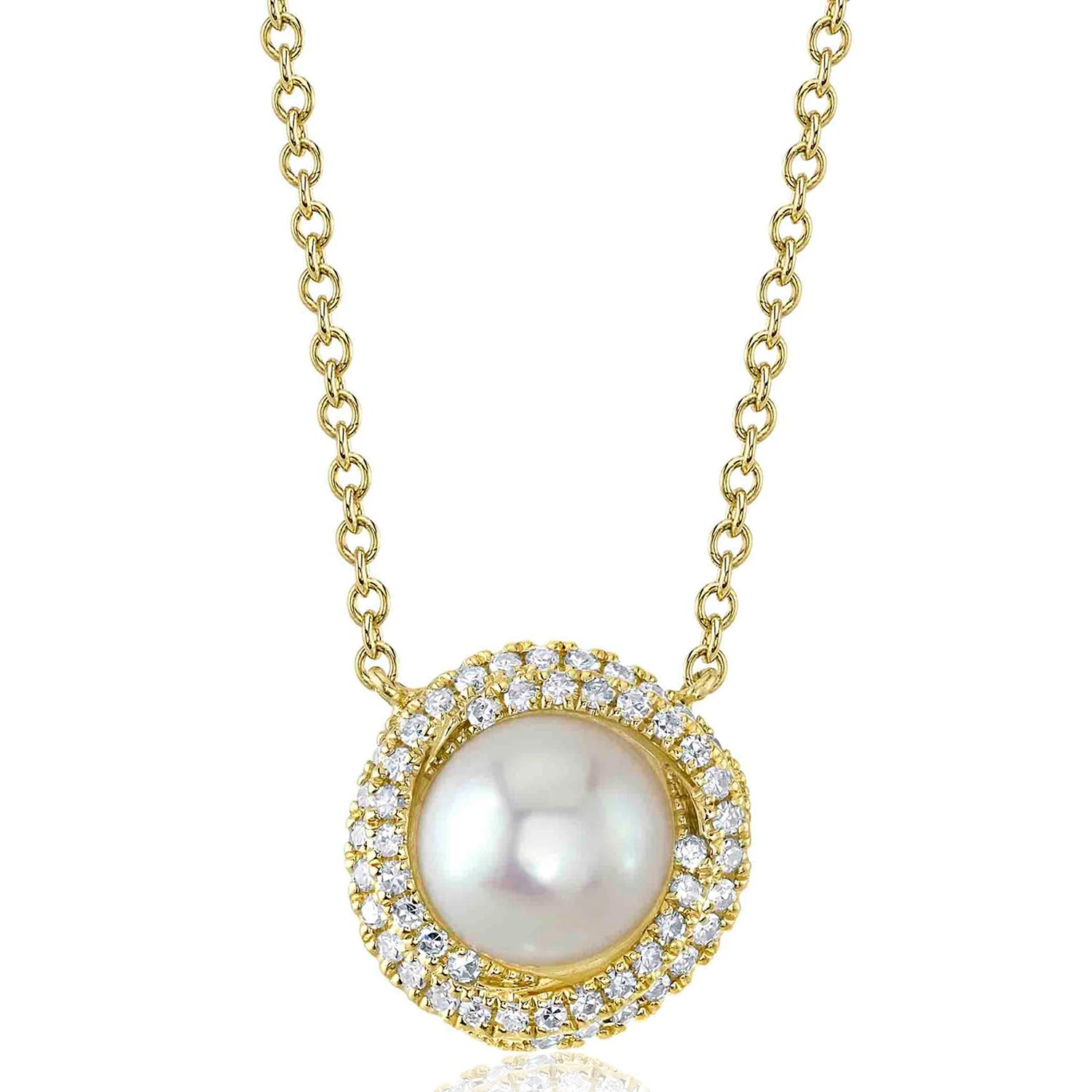 Adorn yourself with elegance and sophistication wearing our exquisite Diamond & Cultured Pearl Halo Pendant Necklace. Crafted in lustrous 14K yellow gold, this pendant features a luminous cultured pearl encircled by a sparkling halo of 0.13-carat diamonds. The delicate balance of pearls and diamonds creates a timeless piece that adds grace and allure to any neckline. Whether for a special occasion or everyday wear, this pendant exudes refined beauty.