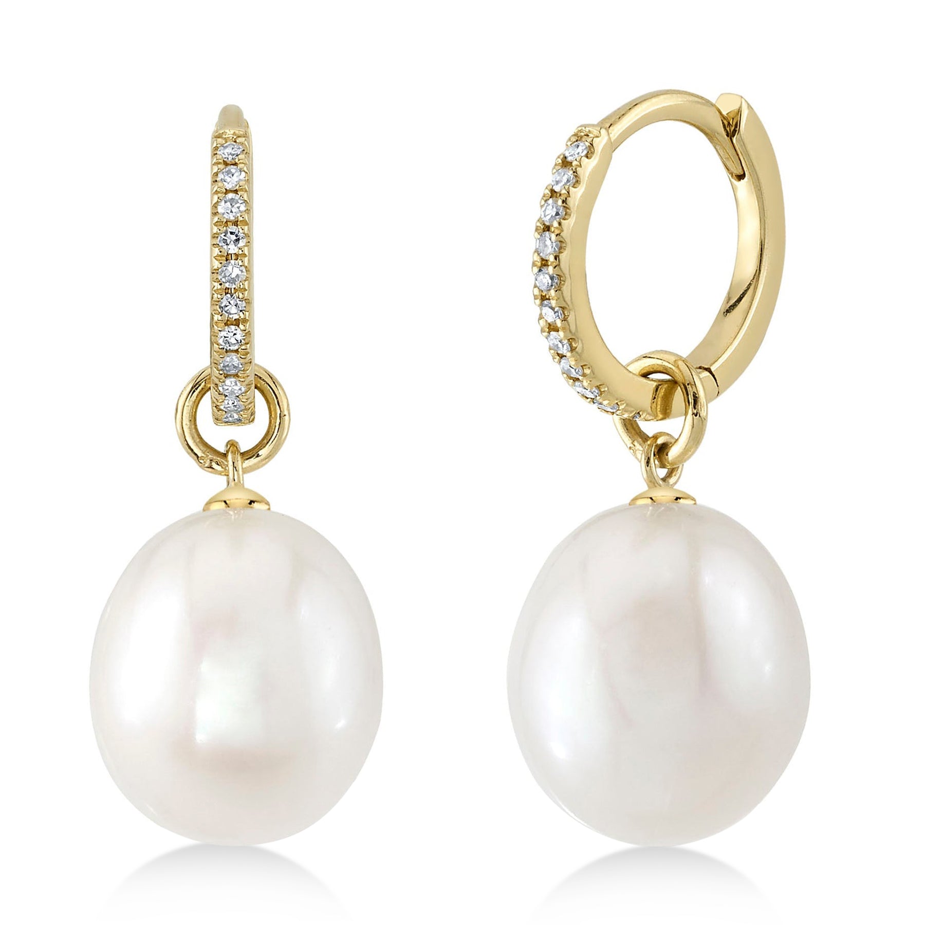 Diamond & Cultured Pearl Huggie Drop Earrings 14K Yellow Gold (0.06ct)