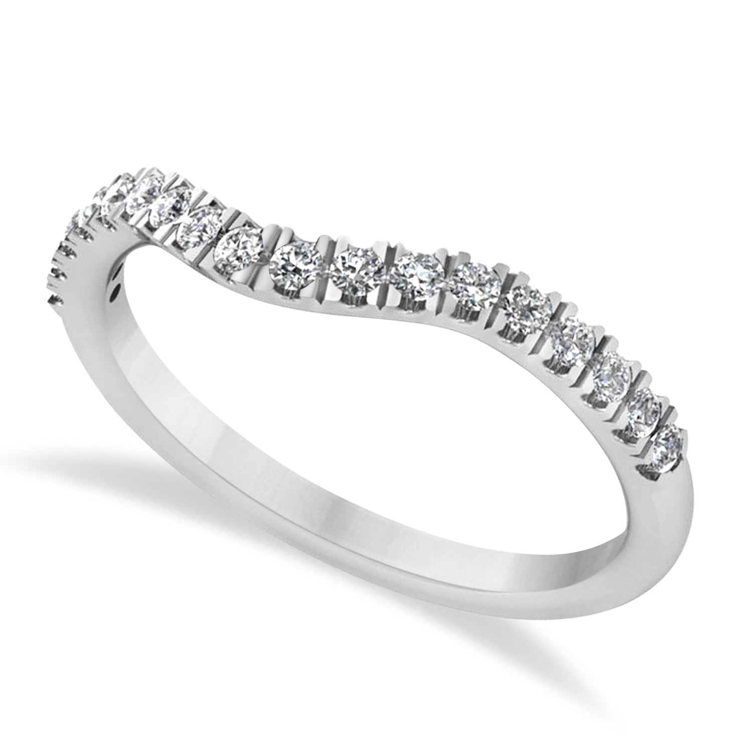 Diamond Curved Ring Wedding Band 14k White Gold (0.27ct)