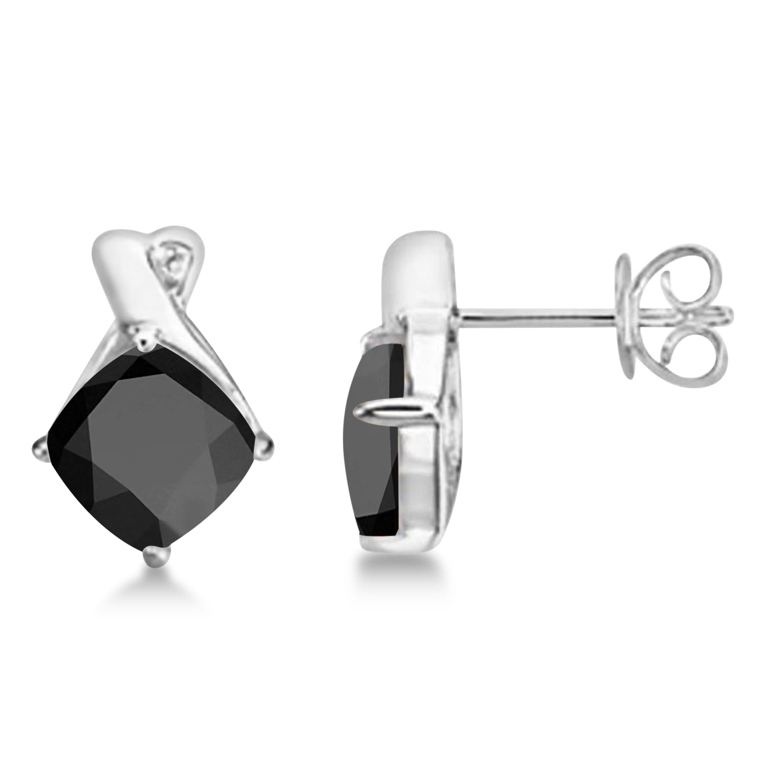 Diamond & Cushion Black Onyx Drop Earrings 14k White Gold (2.70ct)