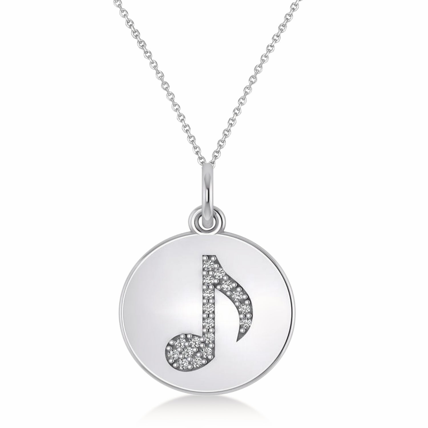 From our Musical Collection, Make a stylish statement with this Diamond Eight Note Musical Disc Pendant Necklace in 14K White Gold, adorned with 0.09ct of sparkling diamonds. An ideal gift for those who cherish music and elegance, this unique pendant is crafted to shine beautifully with every movement.