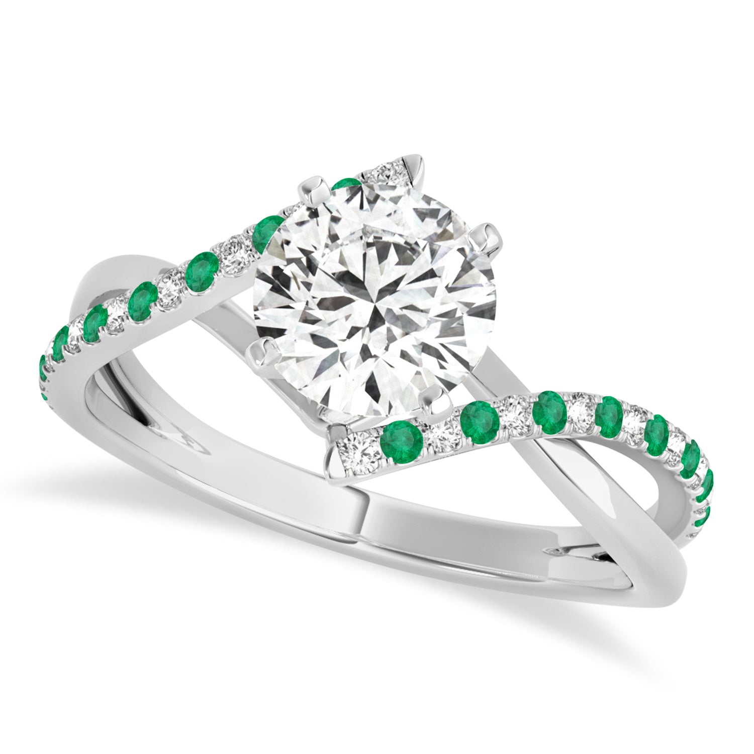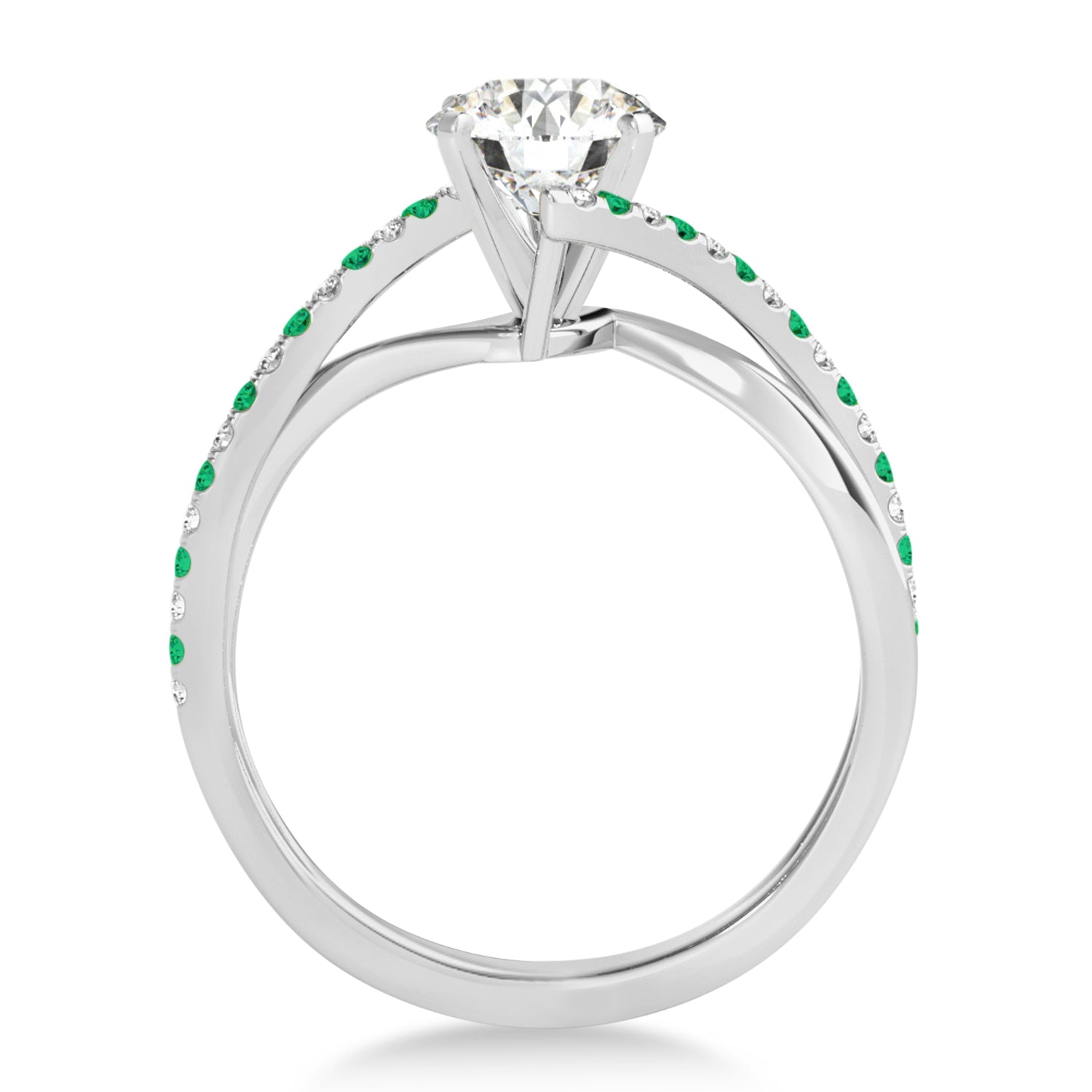 This unique bypass engagement ring setting has a twisted band containing a total of 34 alternating Emeralds & Diamonds on the ring's shank. The diamonds are of G-H color and SI1-SI2 clarity.