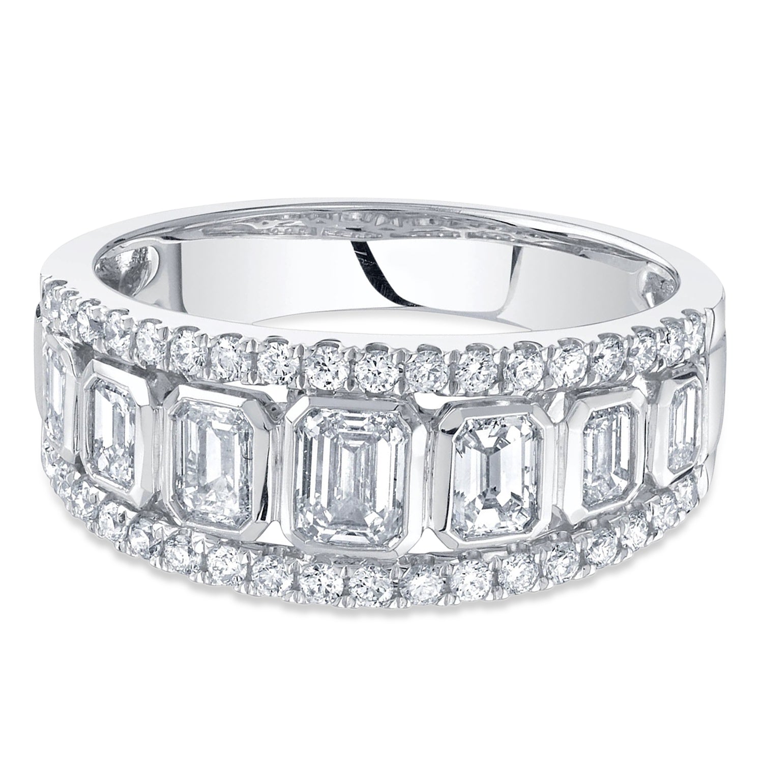 Diamond Emerald Cut Bezel Setting Ring Band in 14K White Gold (1.55ct)