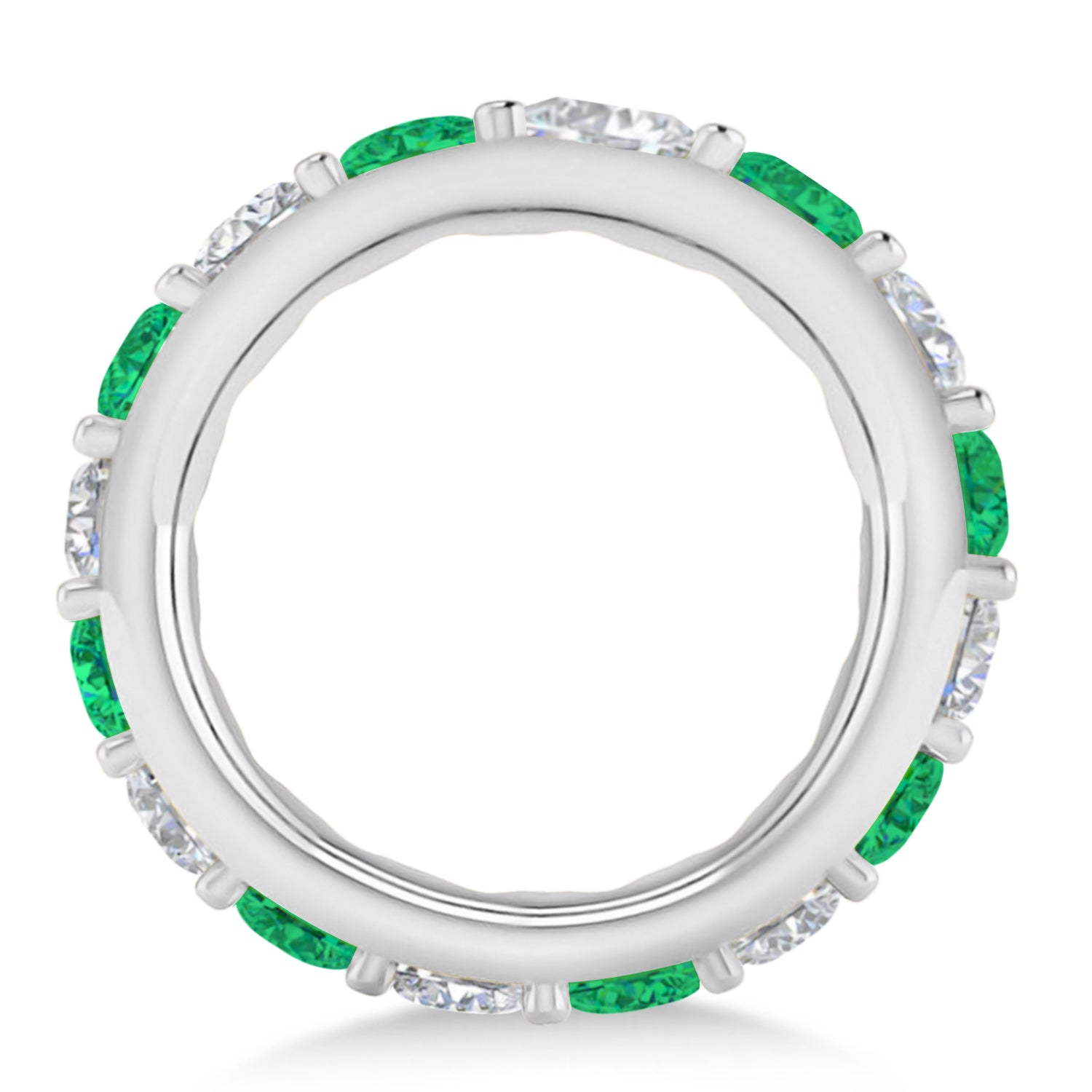 Diamond & Emerald Eternity Wedding Band 14k White Gold (4.20ct)