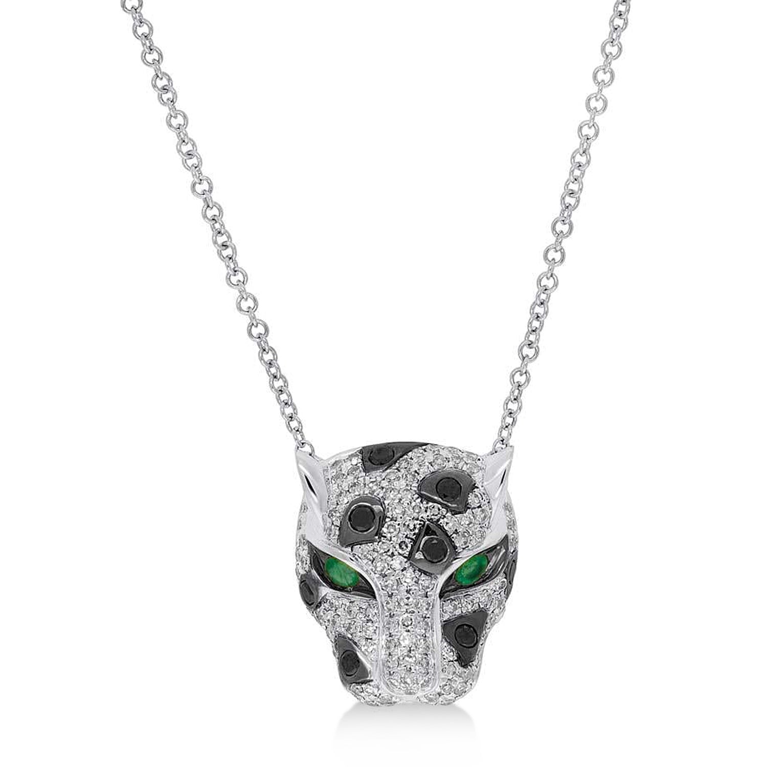 Diamond & Emerald Panther Pendant Necklace 14K White Gold (0.52ct)