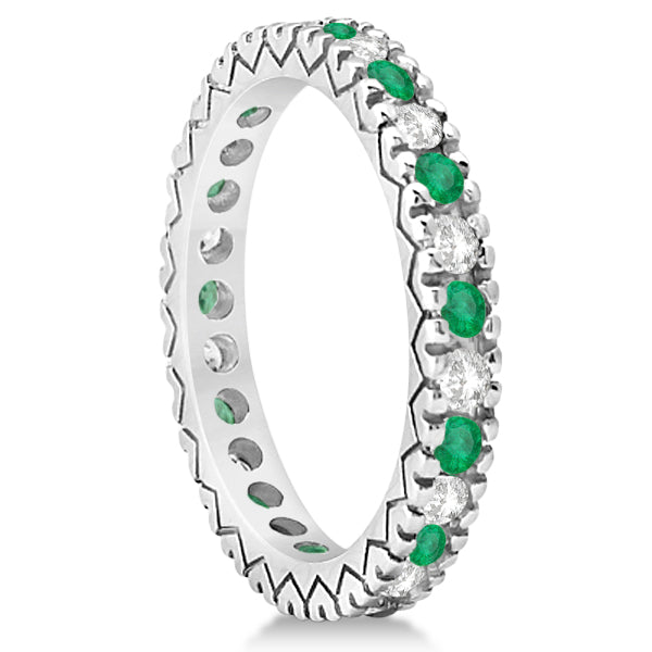 Diamond & Emerald Pave Eternity Wedding Band 14k White Gold (0.45ct)
