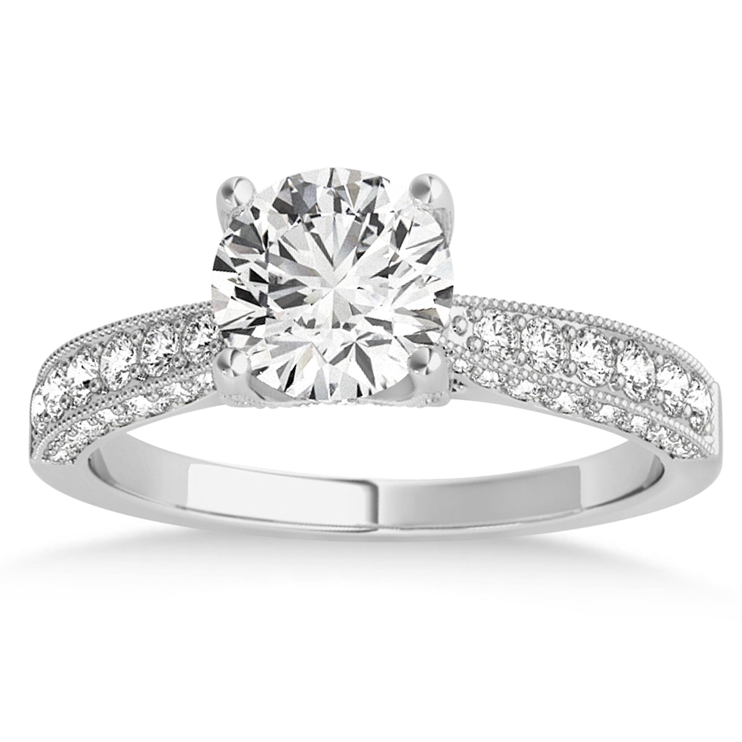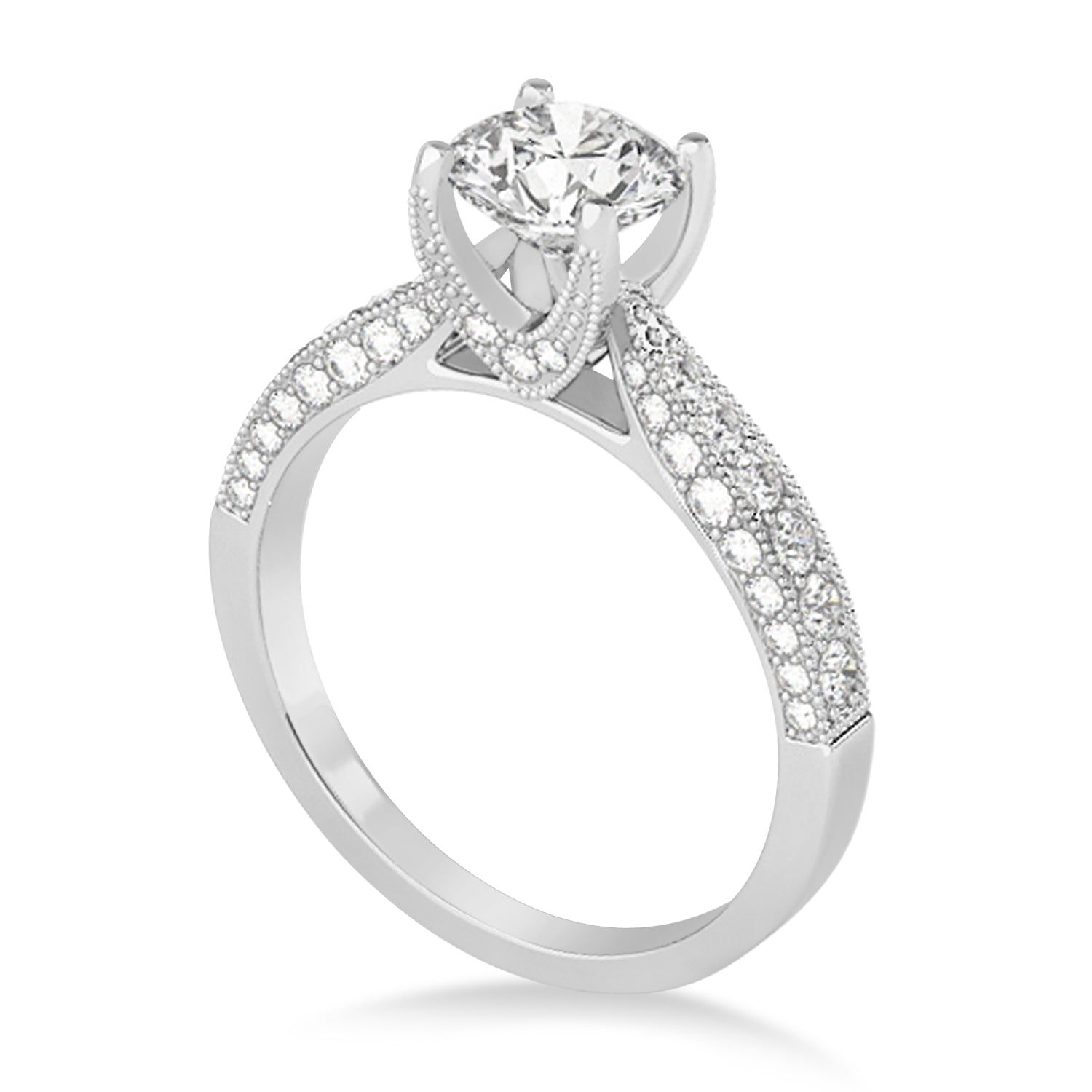 Crafted with an inspiring combination of 30 Diamonds and the center stone of your choice, this Palladium engagement ring is a true gem. Featuring diamonds of SI1-SI2 clarity and G-H color, this engagement ring's quality is of the highest degree.