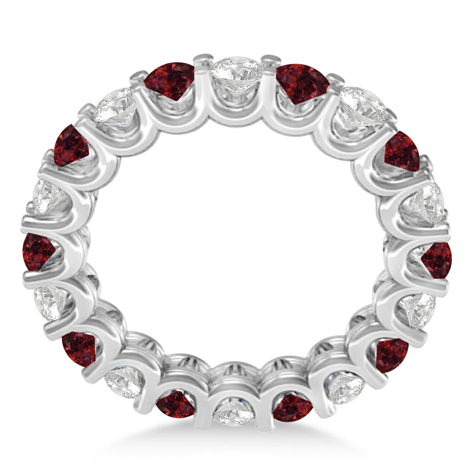 Diamond & Garnet Eternity Wedding Band 14k White Gold (2.40ct)