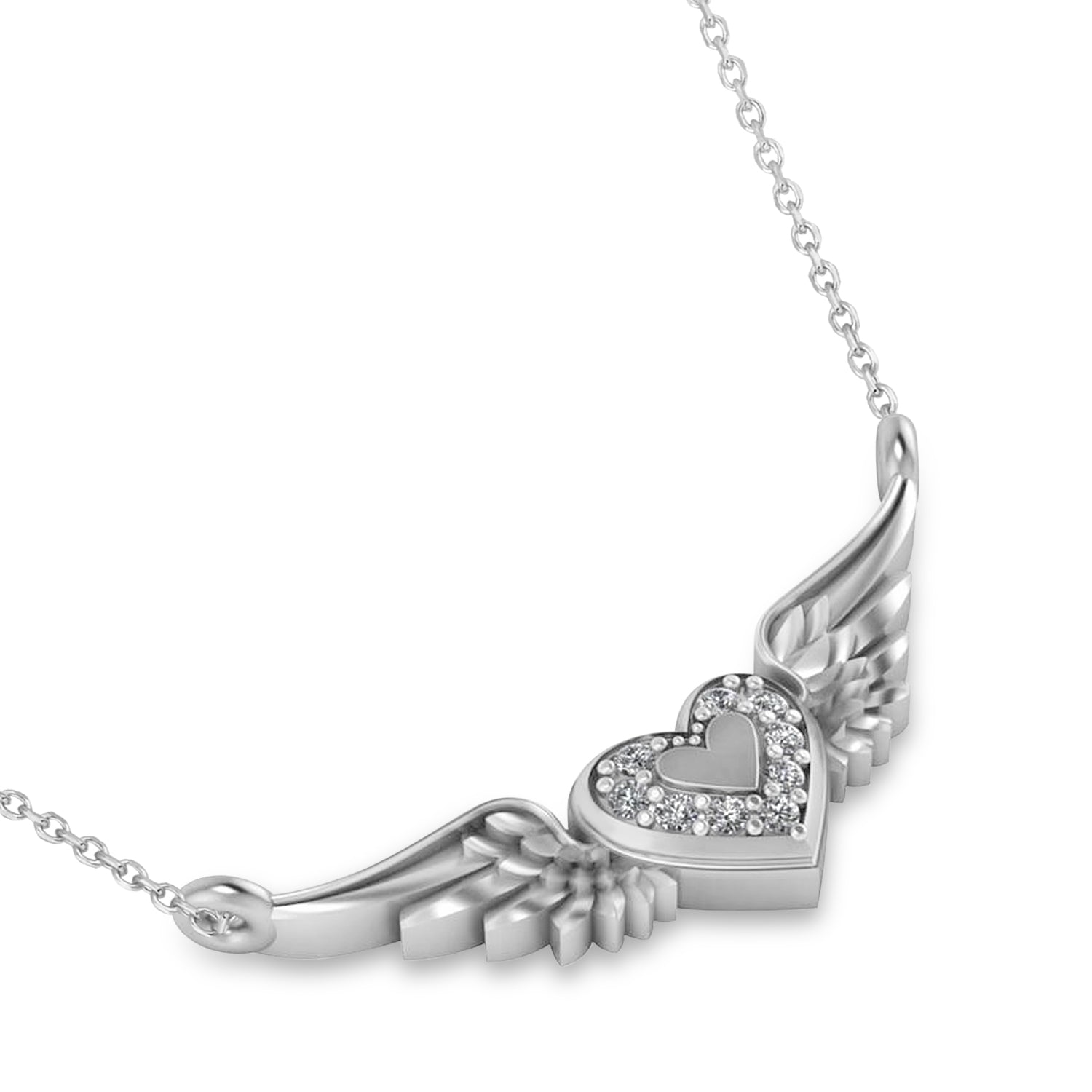 Diamond Heart & Angel Wings Pendant Necklace 14k White Gold (0.05ct)