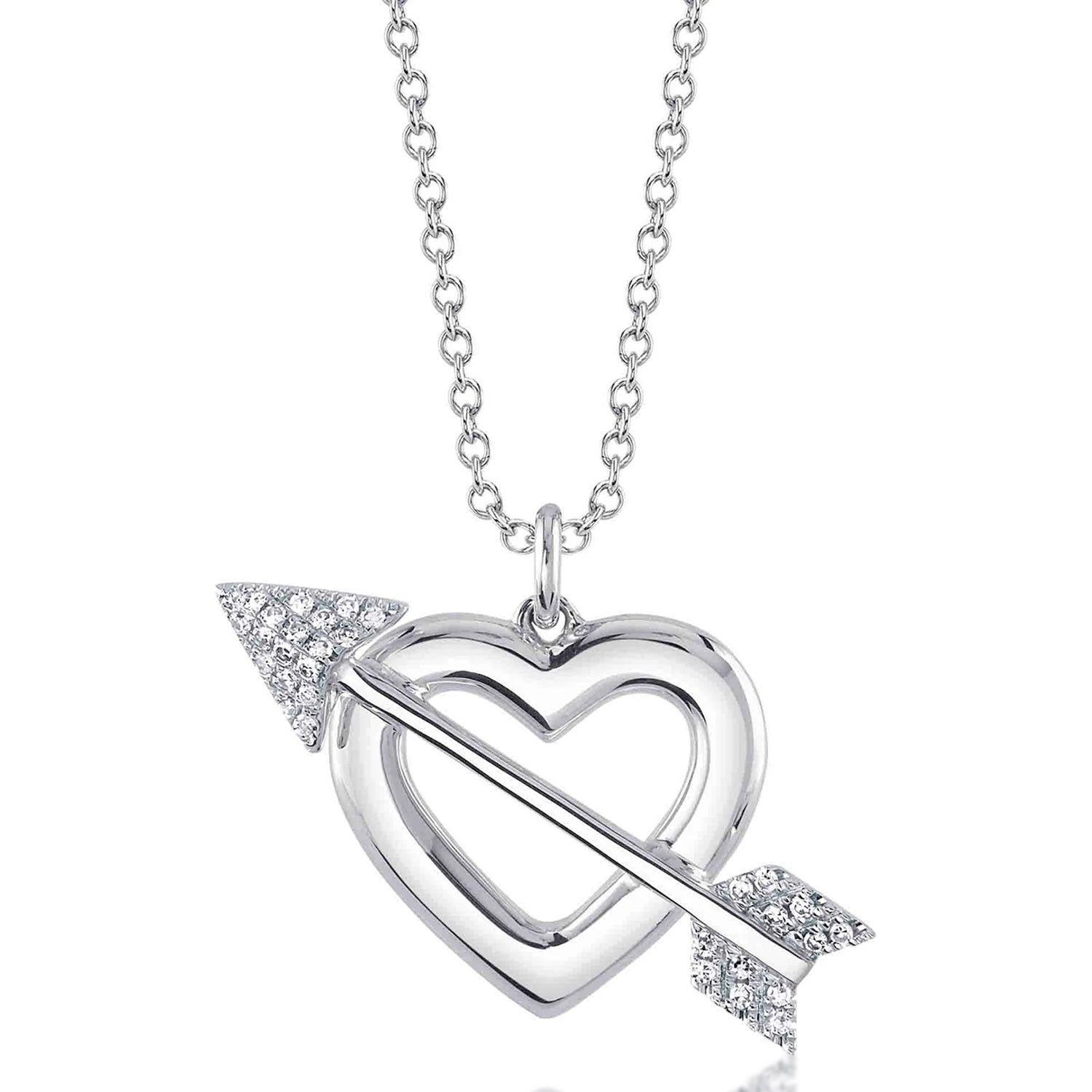 Diamond Heart & Arrow Link Pendant Necklace 14K White Gold (0.07ct)