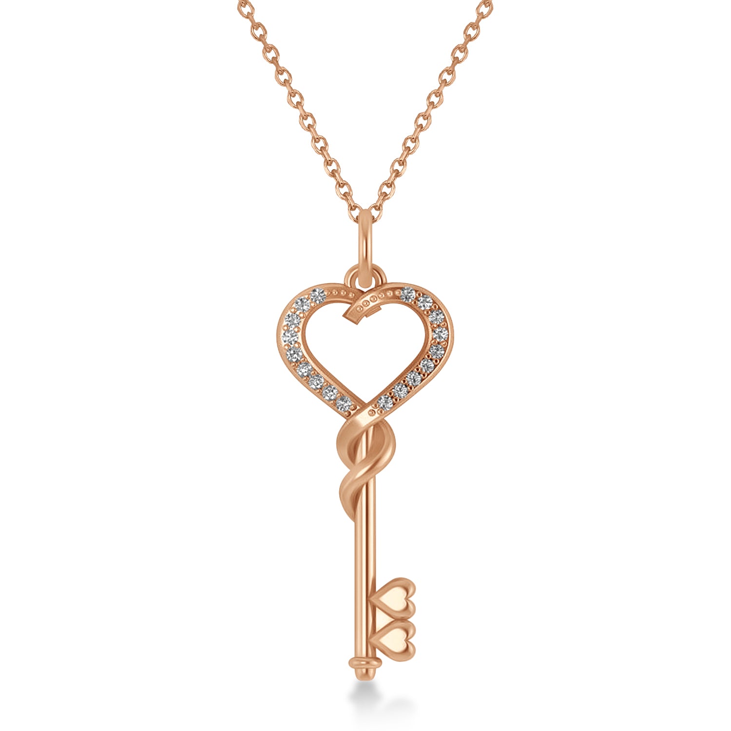 Diamond Heart Key Pendant Necklace 14k Rose Gold (0.18ct)