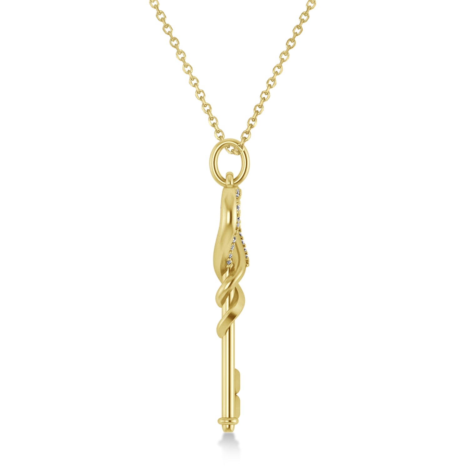 Diamond Heart Key Pendant Necklace 14k Yellow Gold (0.18ct)