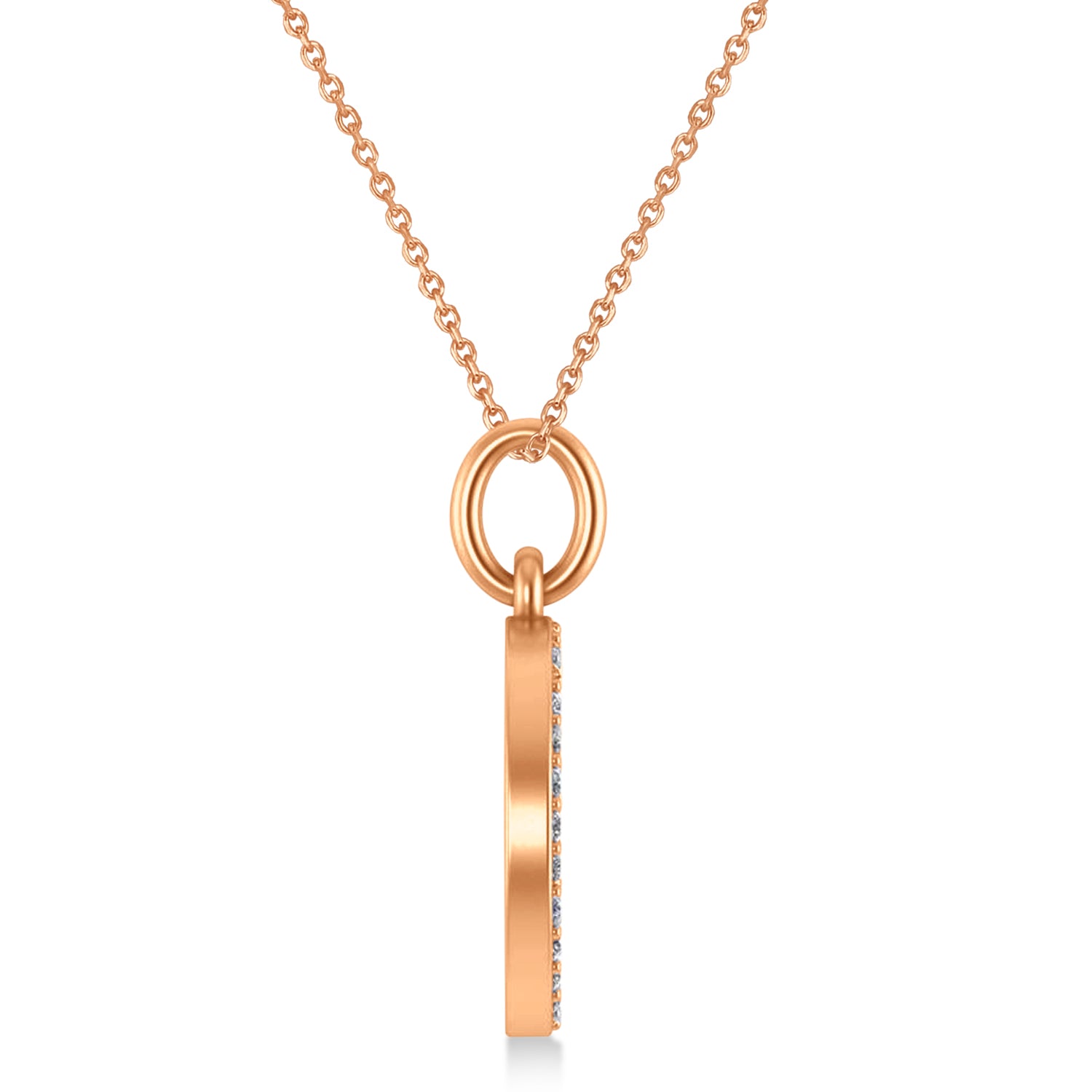 Diamond Jewish Am Yisrael Chai Disc Pendant Necklace 14K Rose Gold (.28ct)