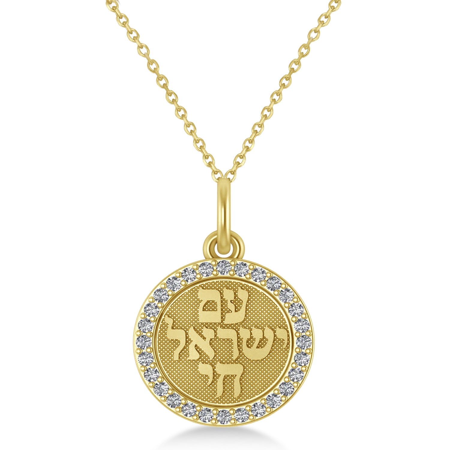 Diamond Jewish Am Yisrael Chai Disc Pendant Necklace 14K Yellow Gold (.28ct)