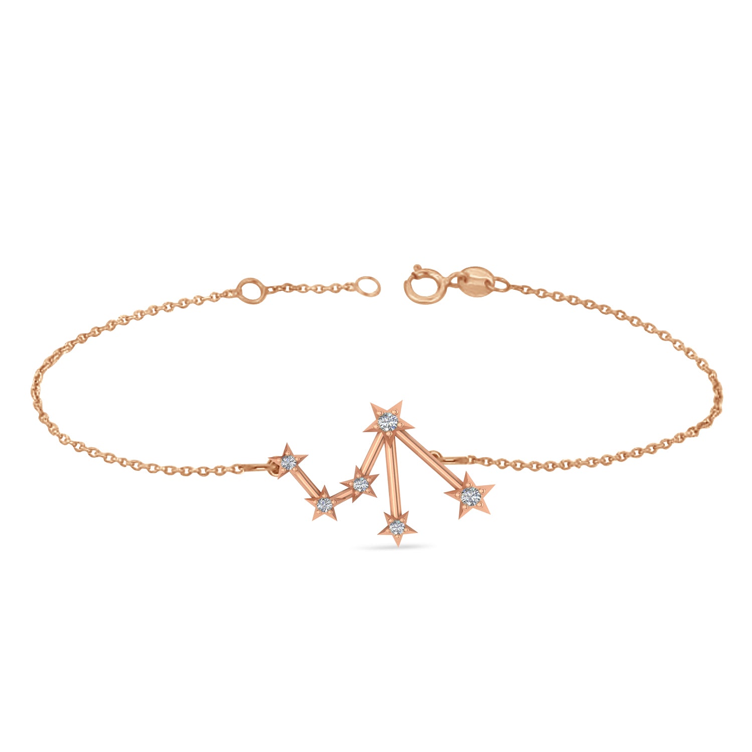 Diamond Libra Zodiac Constellation Star Bracelet 14k Rose Gold (0.08ct)