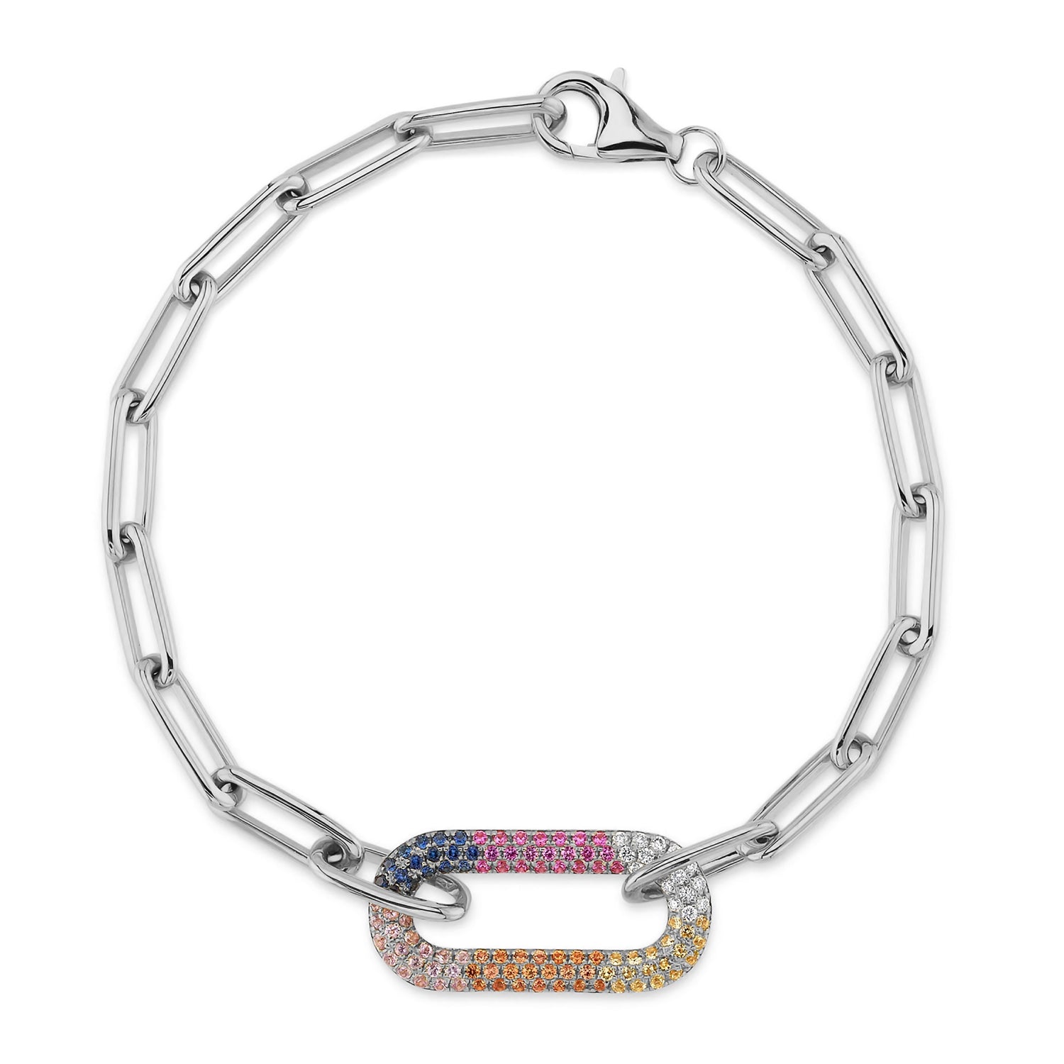 Diamond & Multi-color Pave Bracelet in 14k White Gold Paper Clip Link (0.69ct)