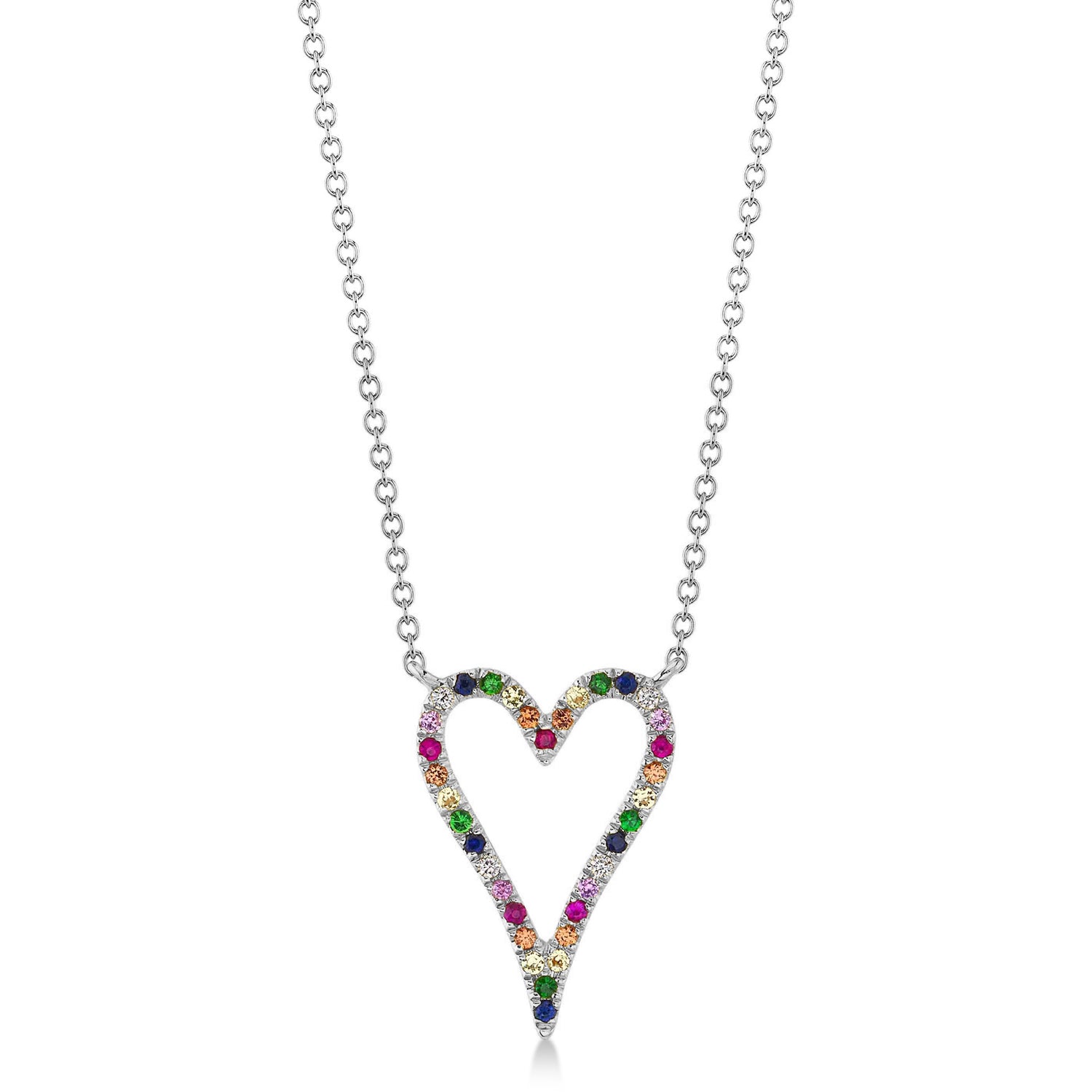 Indulge in the allure of this Diamond & Multi-Color Pave Heart Pendant in 14K White Gold (0.22ct) necklace?a statement piece that effortlessly blends classic charm with modern sophistication. This necklace boasts a captivating array of diamonds and multi-colored gemstones, creating a dazzling display of color and brilliance. The diamonds, with a combined weight of 0.22ct, add a touch of timeless sophistication, while the rainbow-colored gemstones infuse the piece with vibrant, captivating hues.Elevate your style and celebrate life's moments with this stunning necklace that offers both exquisite beauty and a comfortable fit.