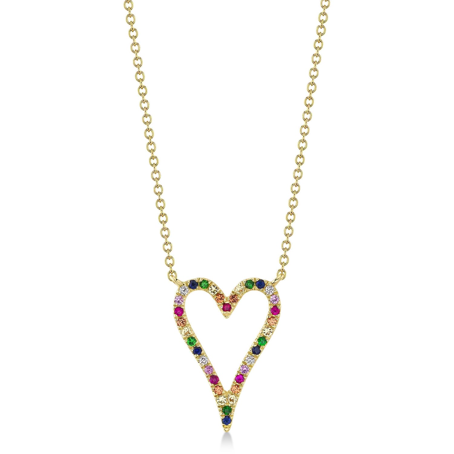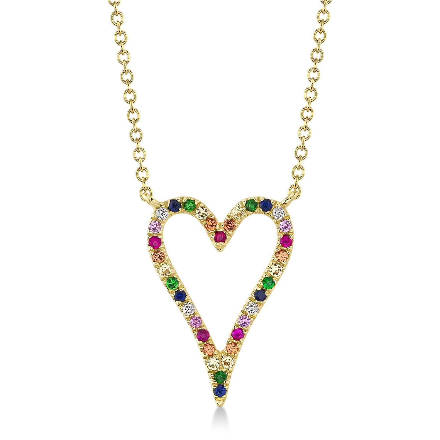Diamond & Multi-Color Pave Heart Pendant in 14K Yellow Gold necklace (0.22ct)