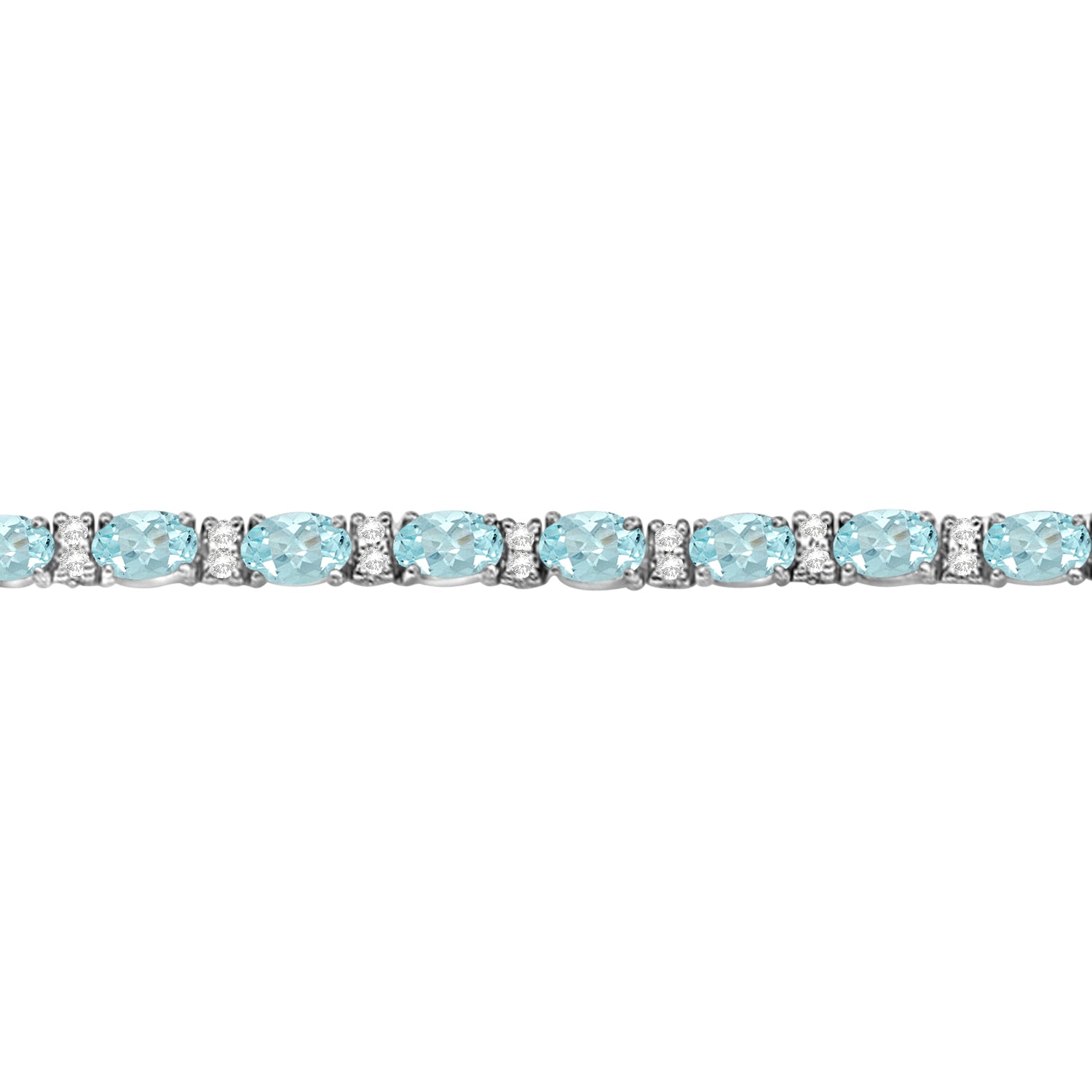 Diamond & Oval Cut Aquamarine Tennis Bracelet 14k White Gold (9.25ct)
