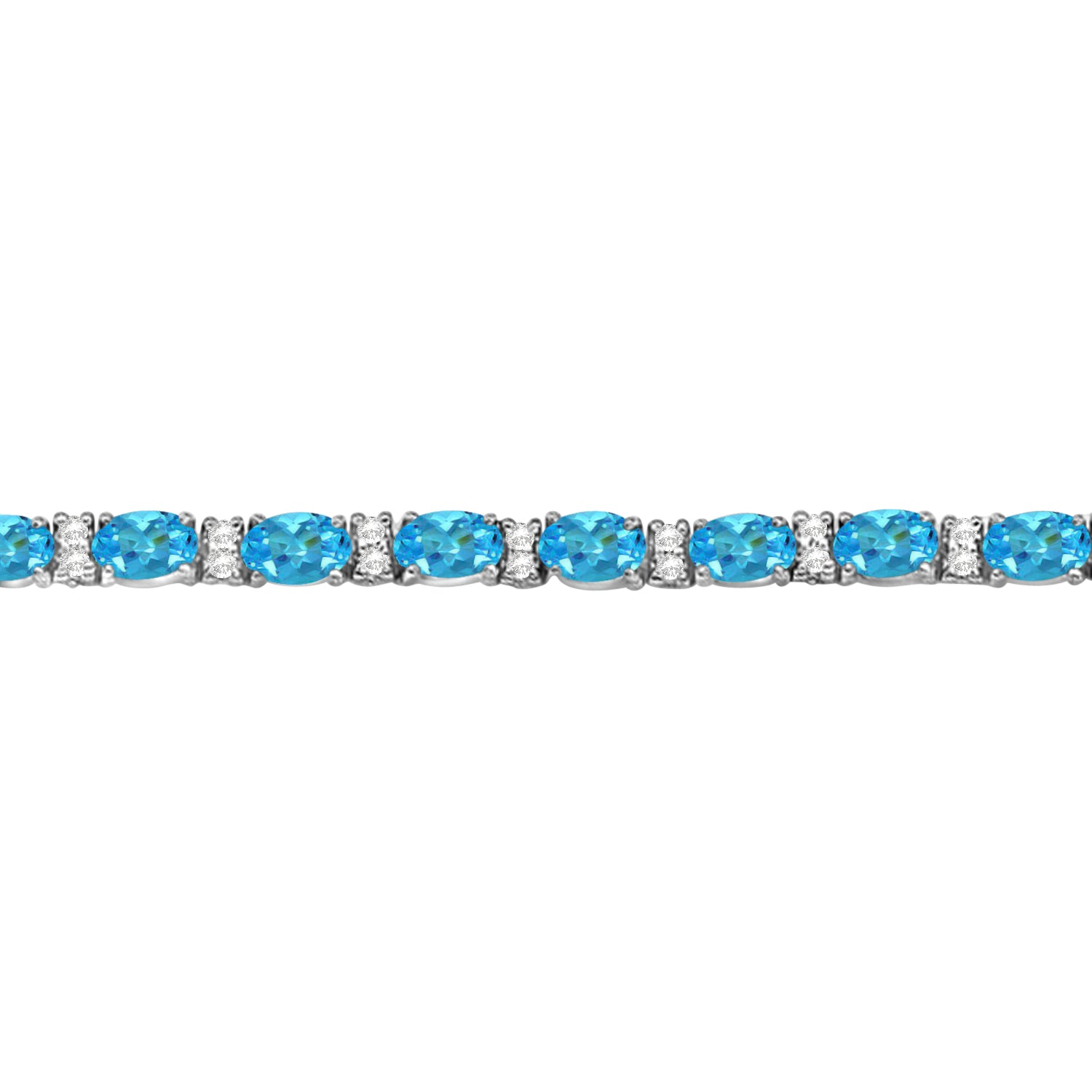 Diamond & Oval Cut Blue Topaz Tennis Bracelet 14k White Gold (9.25ct)