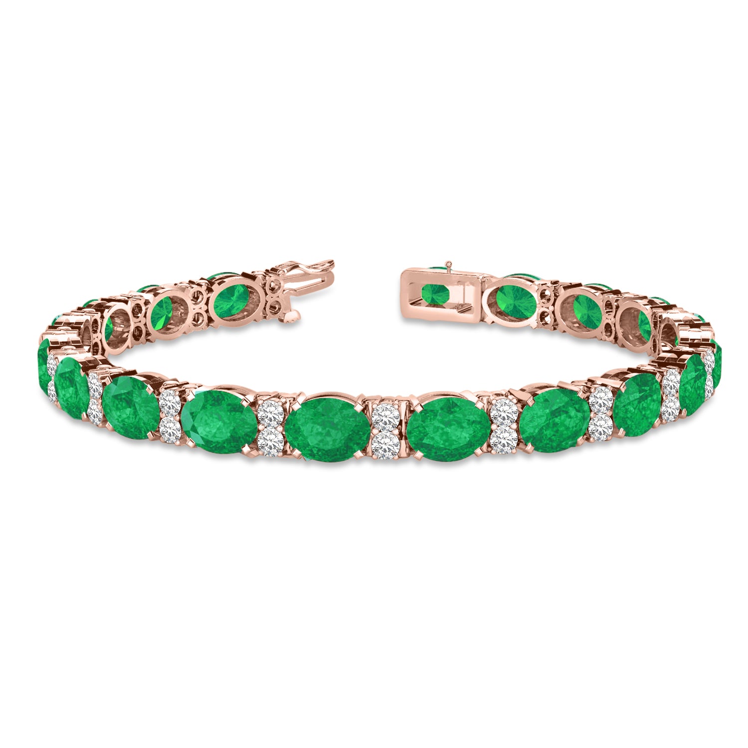 Diamond & Oval Cut Emerald Tennis Bracelet 14k Rose Gold (13.62ctw)