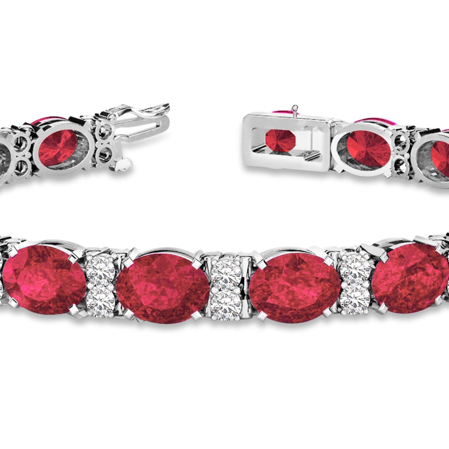 Diamond & Oval Cut Garnet Tennis Bracelet 14k White Gold (13.62ct)