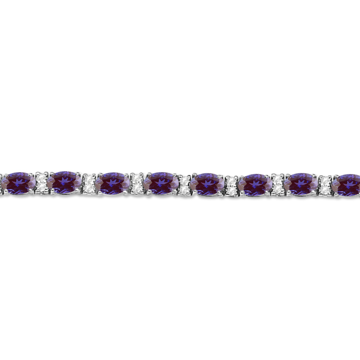 Diamond & Oval Cut Lab Alexandrite Tennis Bracelet 14k White Gold (9.2