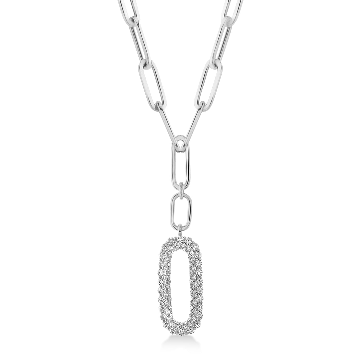 Diamond Paper Clip Drop Pendant Necklace 14k White Gold (0.92ct)