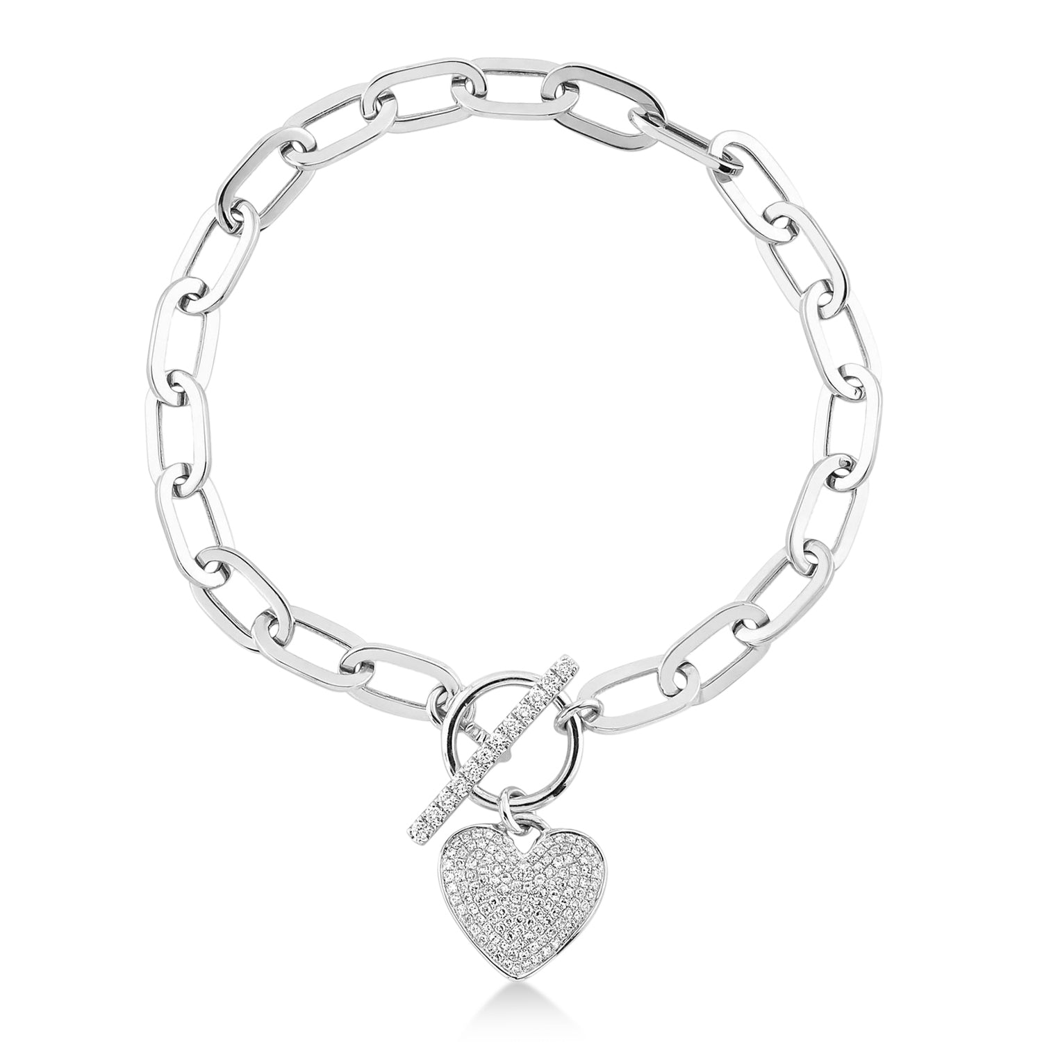 Diamond Pave Heart Paper Clip Link Bracelet 14K White Gold (0.41ct)