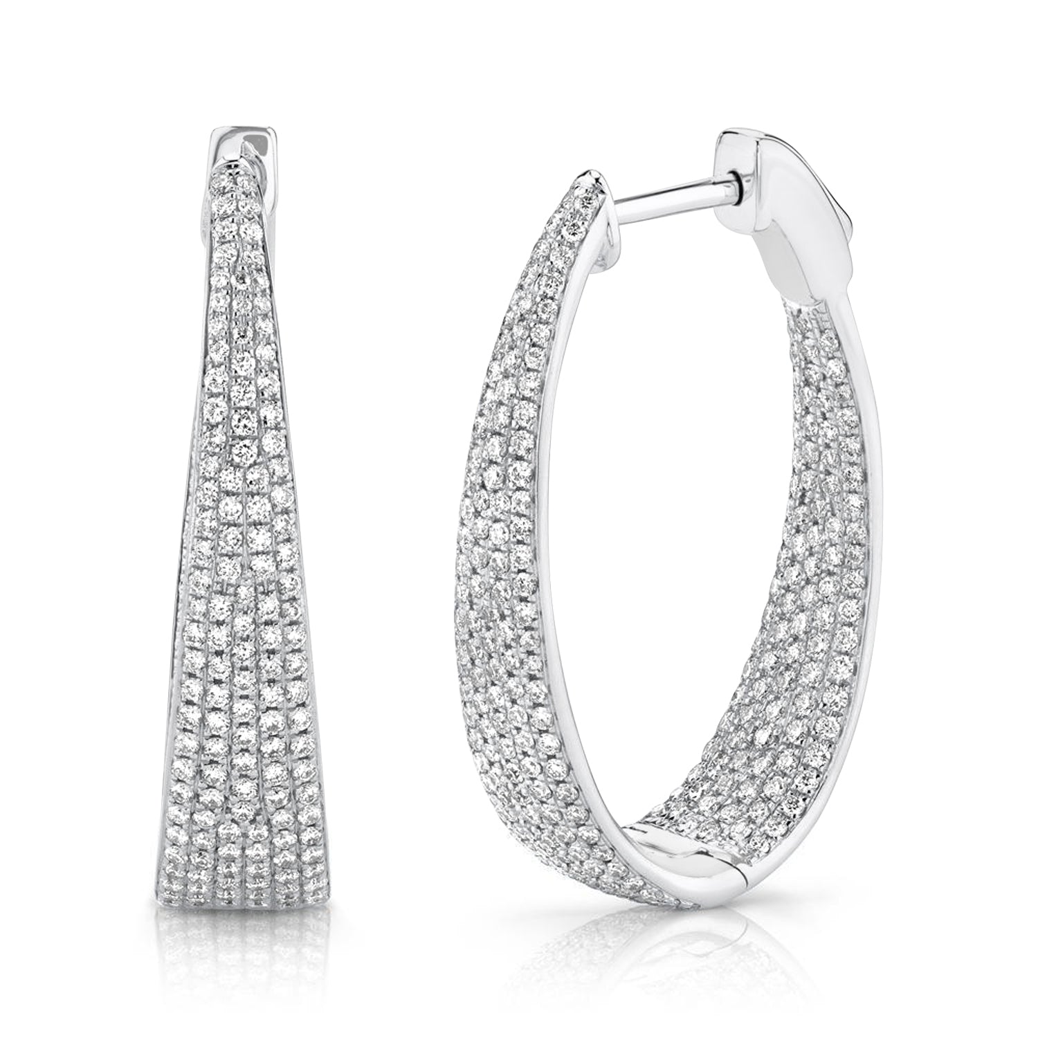 Diamond Pave Inside Out Oval Hoop Earrings 14k White Gold (1.73ct)