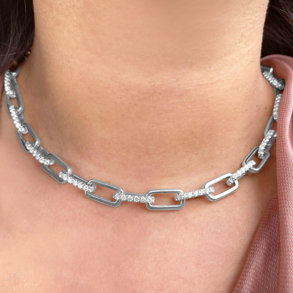 Sitting on a 14k white gold chain, this paperclip chain necklace is perfect for layering with your favorites — or wear it solo as a delicate statement piece. Perfect for any occasion, this paperclip chain necklace features paperclips accented entirely by diamonds of G-H color and SI1-SI2 clarity, totaling 13.01ct.