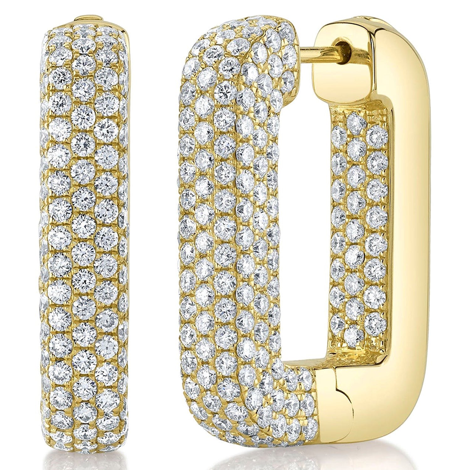 Diamond Pave Rectangle Hoop Earring 14K Yellow Gold (4.20ct)