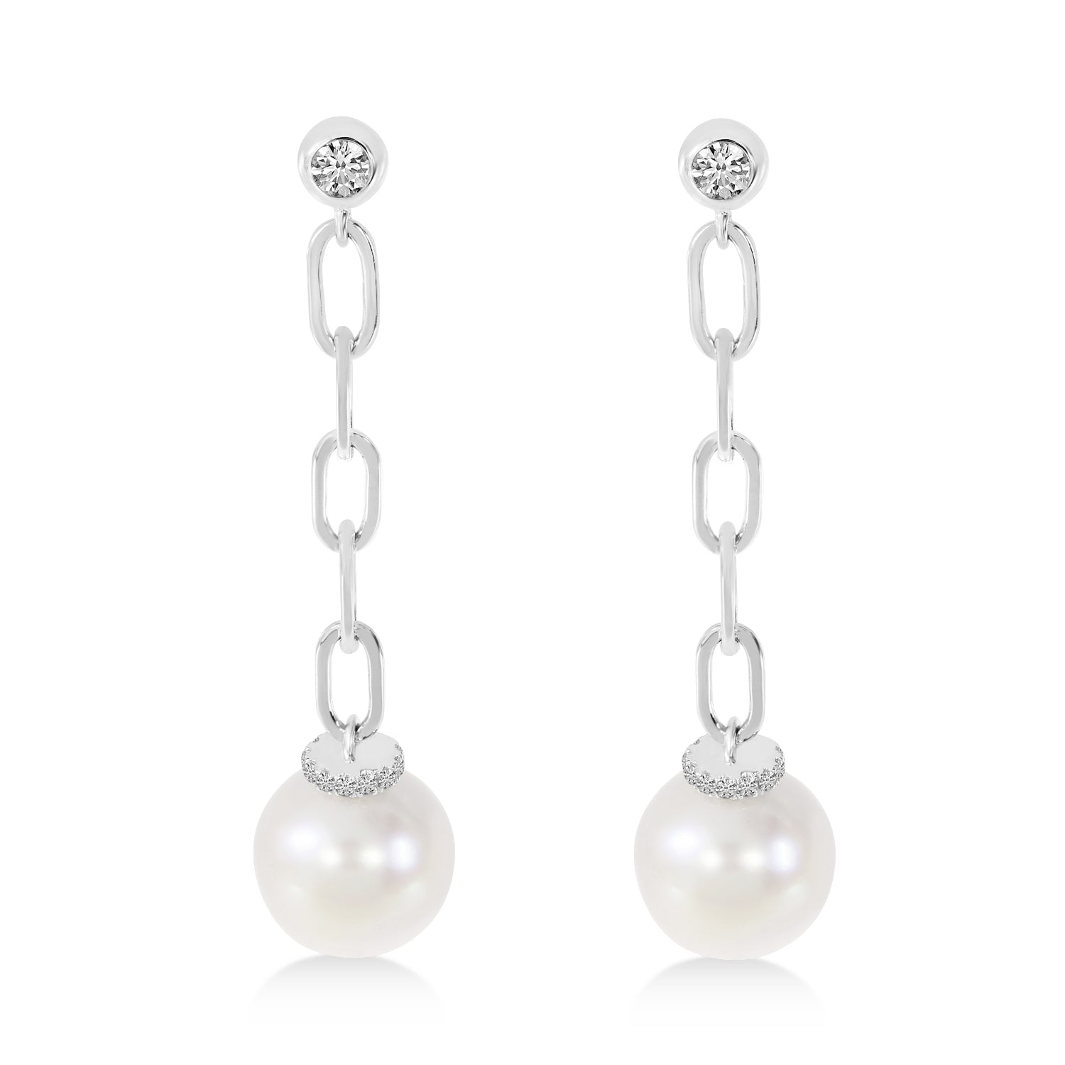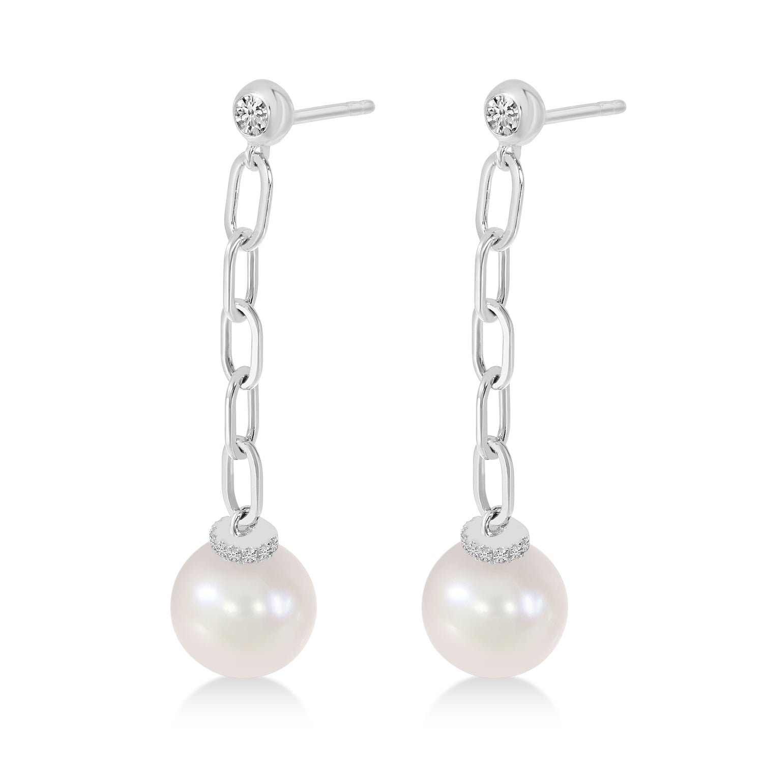 Diamond & Pearl Paperclip Link Earrings 14k White Gold (0.15ct)