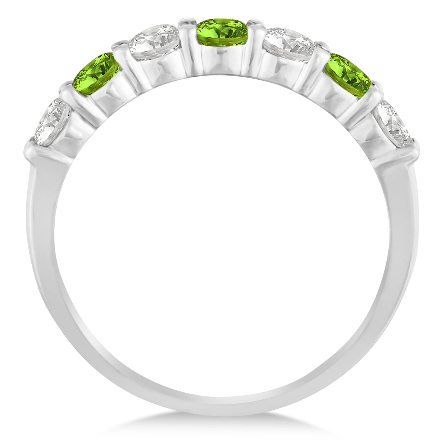 Diamond & Peridot 7 Stone Wedding Band 14k White Gold (1.00ct)