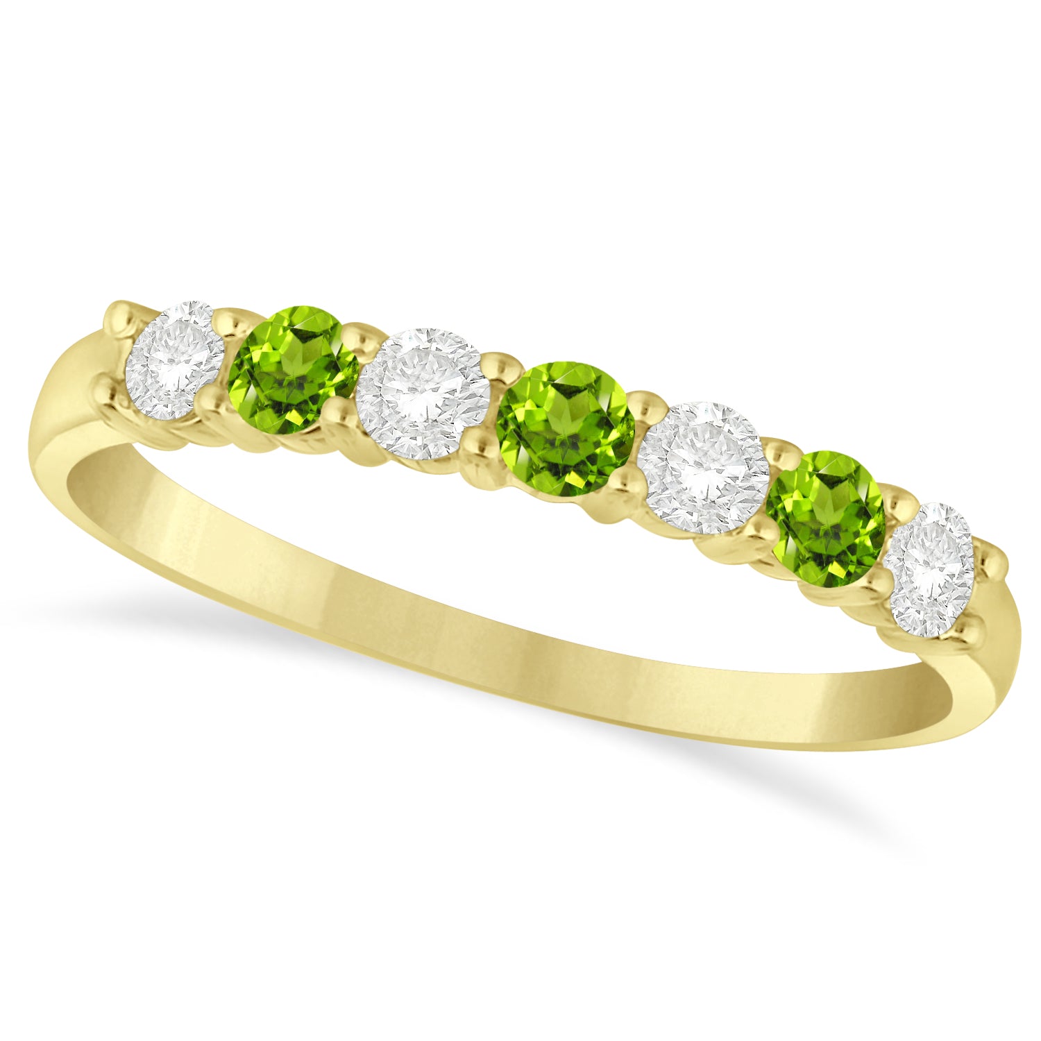 Diamond & Peridot 7 Stone Wedding Band 14k Yellow Gold (0.50ct)