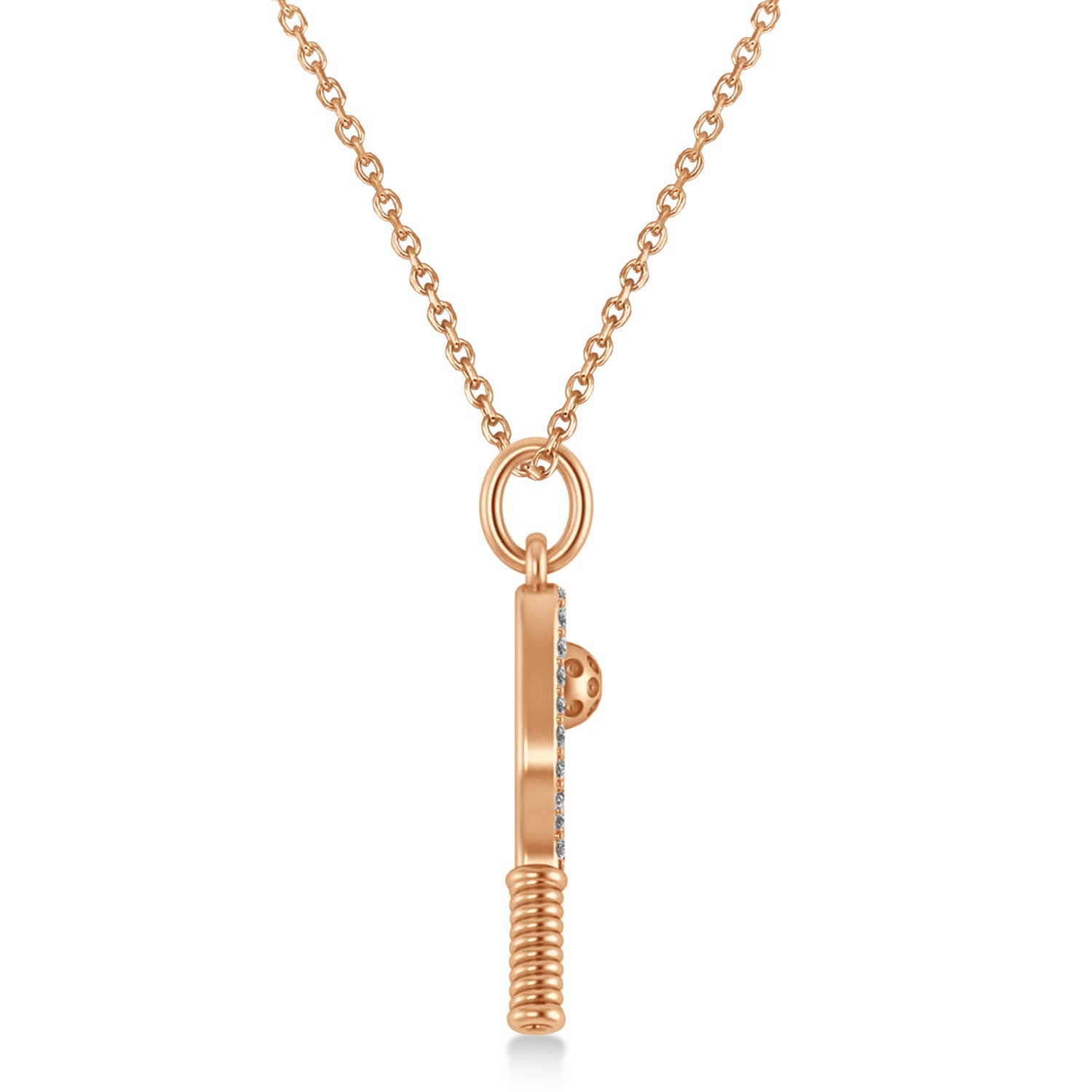 Diamond Pickleball Paddle Pendant Necklace 14k Rose Gold (0.24ct)
